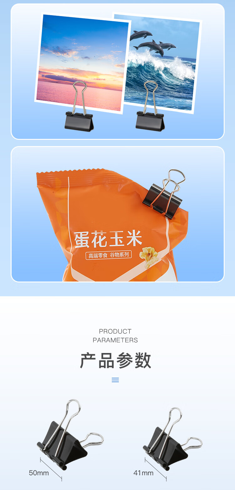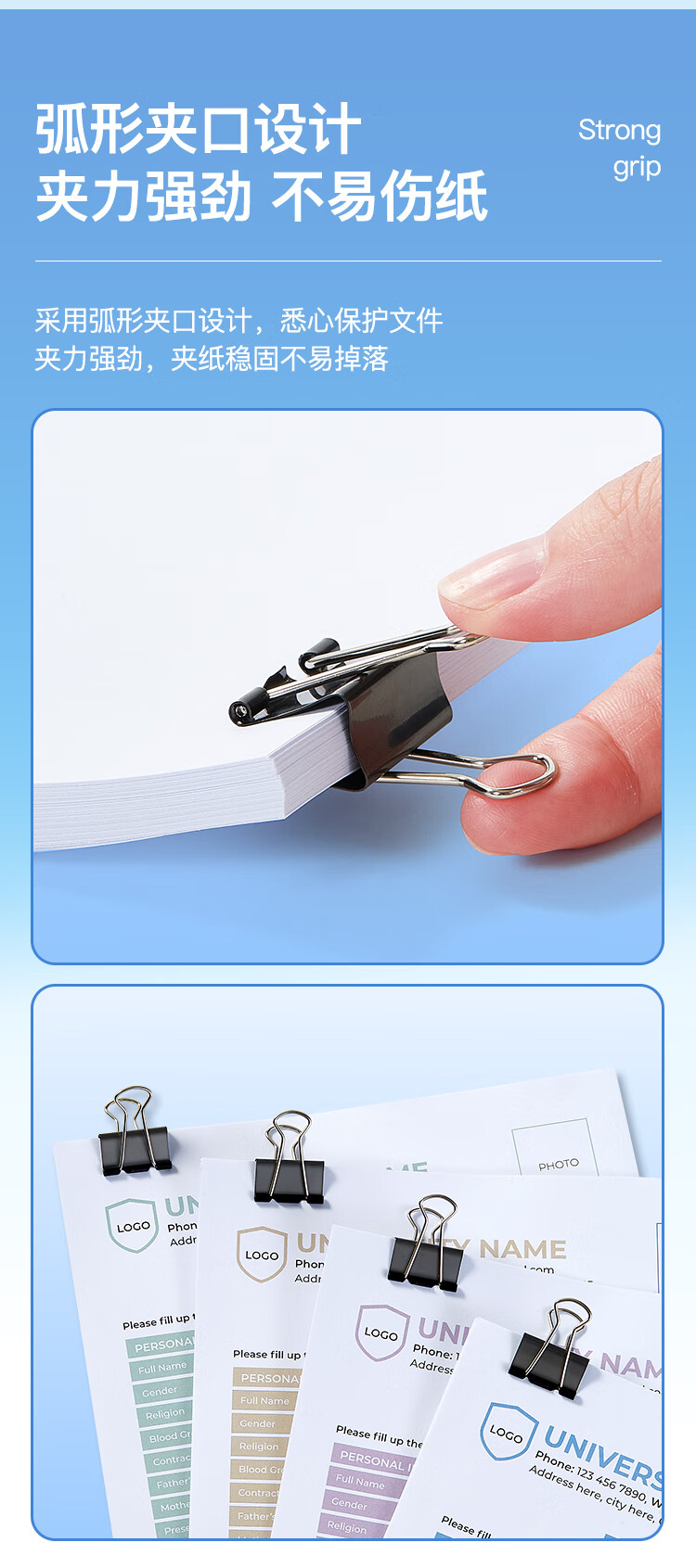 齊心B3626黑色強力長尾票夾41mm*24只/筒*12