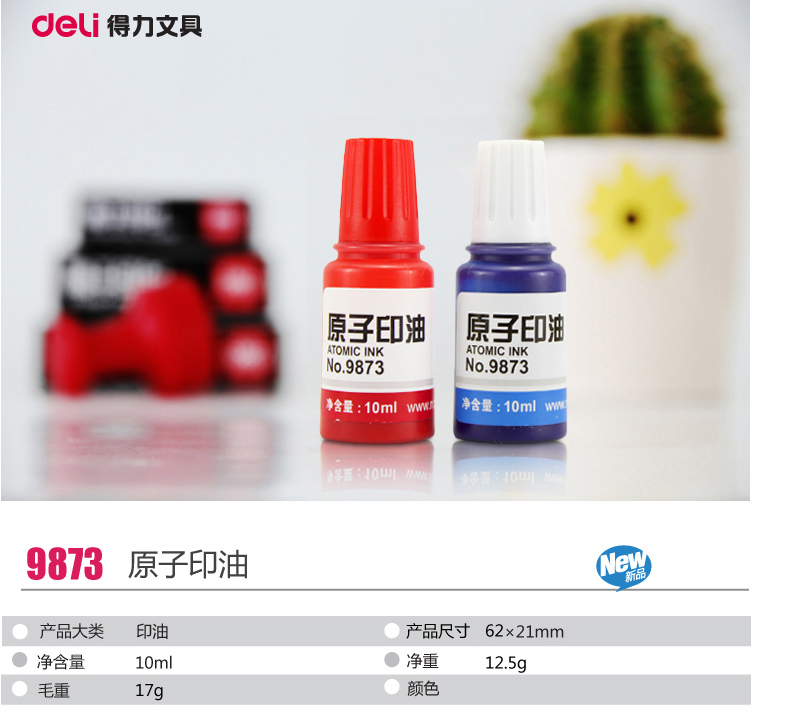 得力9893方形鐵蓋秒干印臺143x87mm(紅)