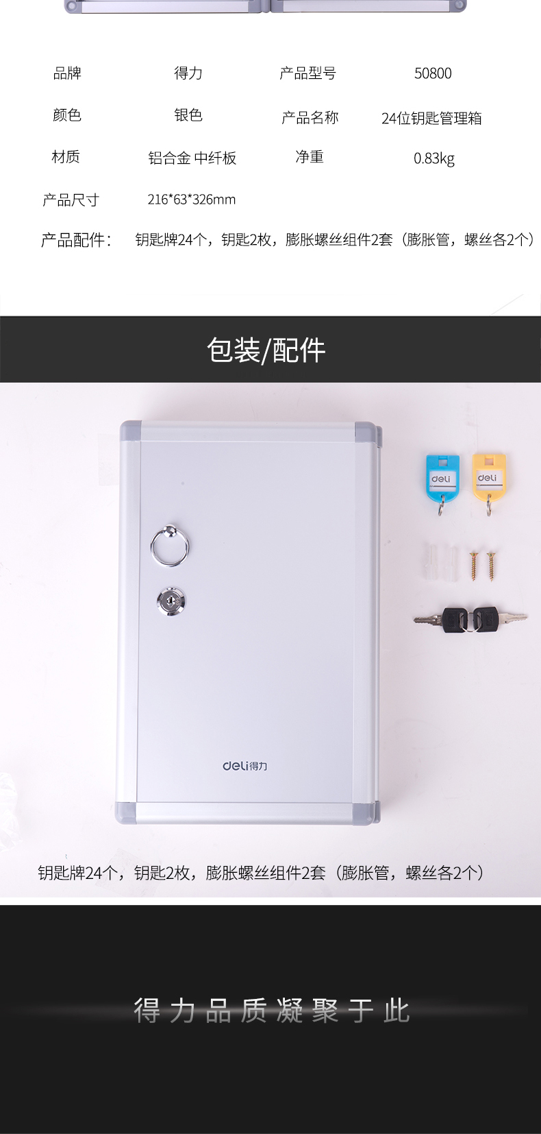 得力50800鋁合金鑰匙管理箱24位(銀)