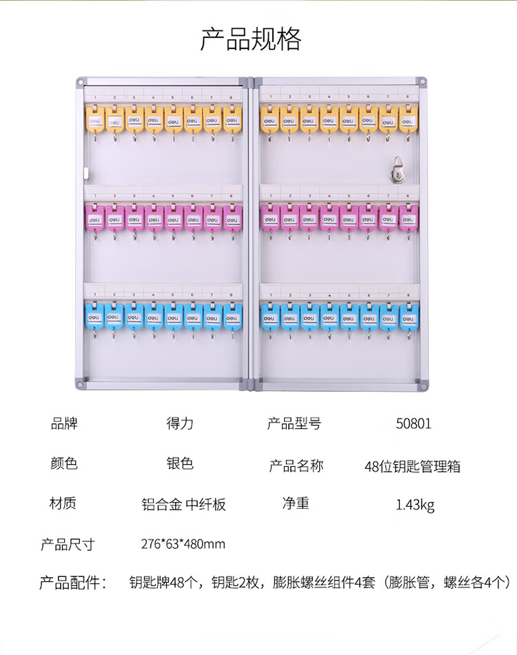 得力50801鋁合金鑰匙管理箱48位(銀)