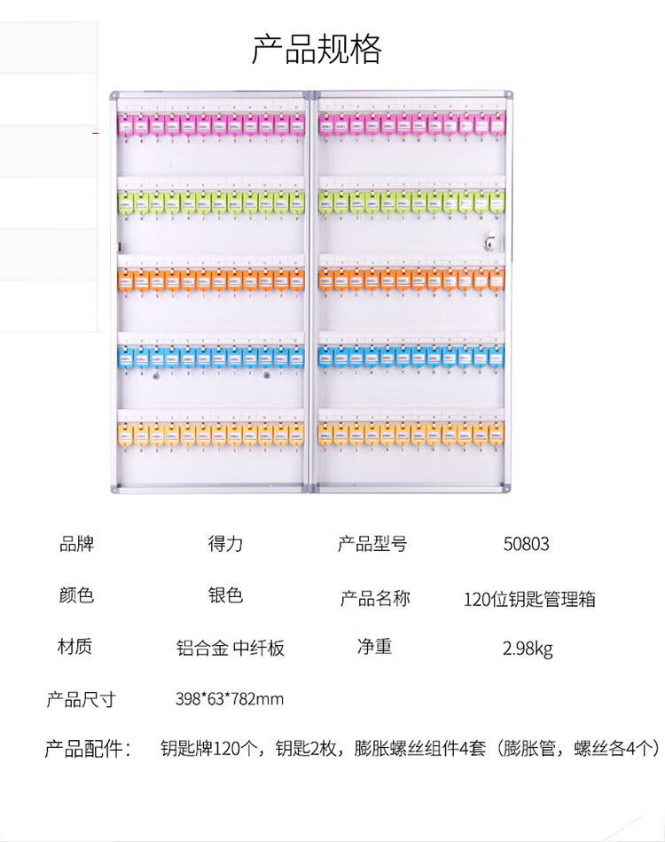 得力50803鋁合金鑰匙管理箱120位(銀)