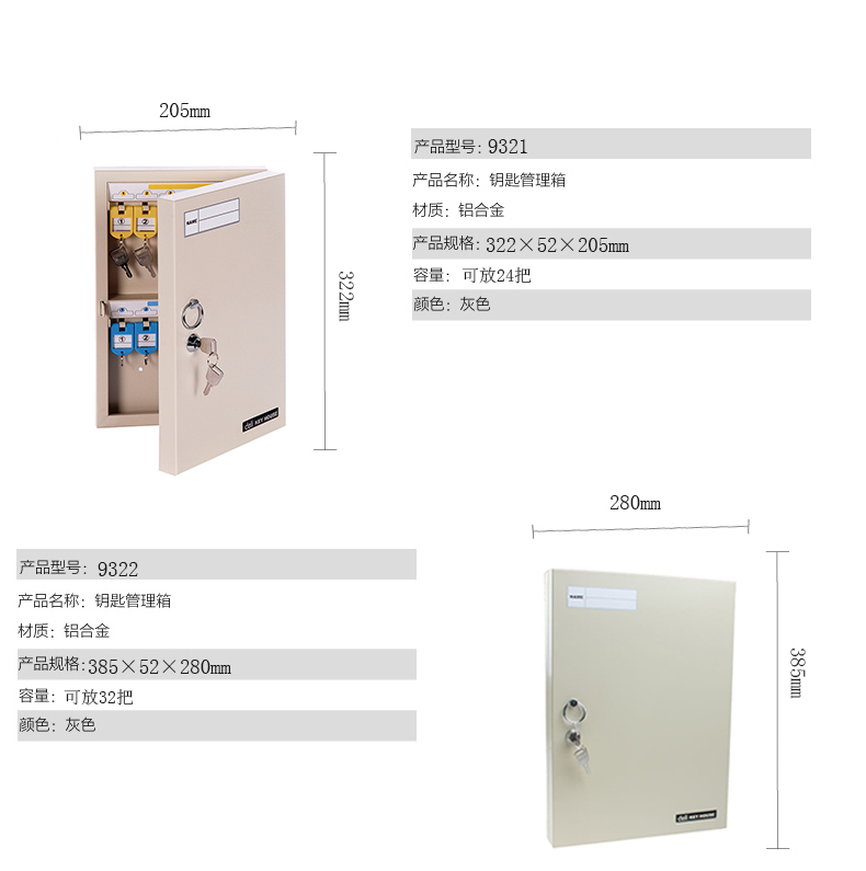 得力9321金屬鑰匙管理箱24位(灰色)