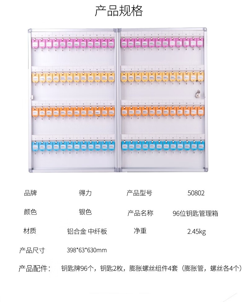 得力50802鋁合金鑰匙管理箱96位(銀)