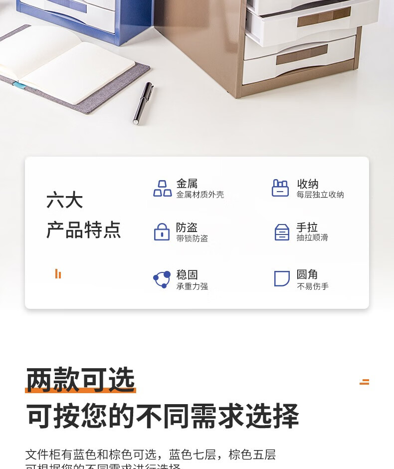得力9703七層金屬外殼文件柜(閃銀棕)
