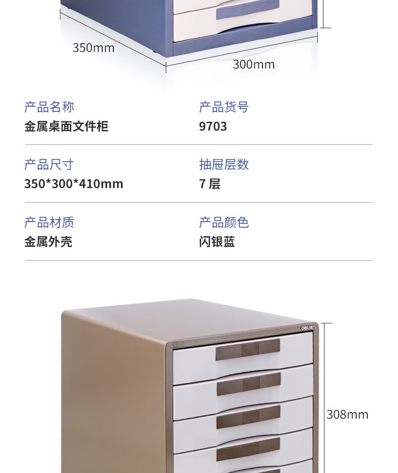 得力9703七層金屬外殼文件柜(閃銀藍)