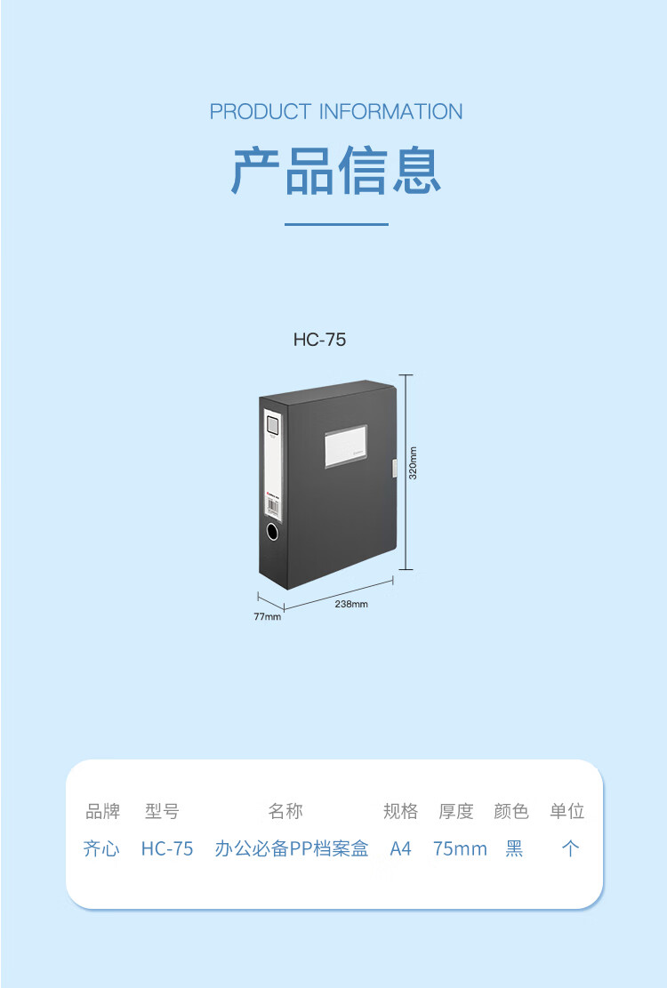 適用類型 : 齊心HC-75檔案盒 黑*12