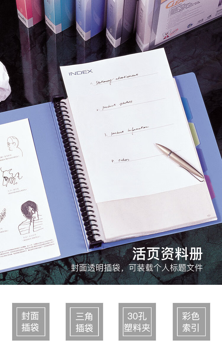 齊心NF407A-S 40頁A4活頁資料冊30孔塑膠夾藍*10