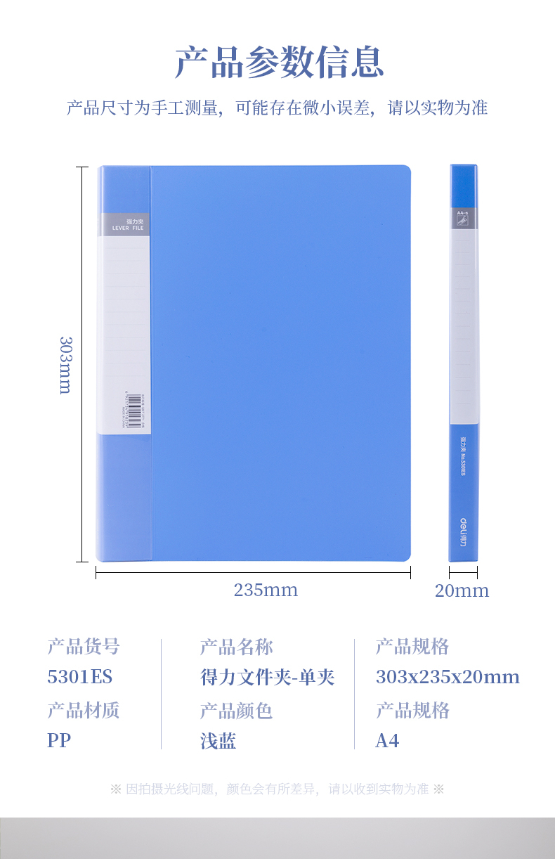 得力5302雙強力文件夾(藍)*12