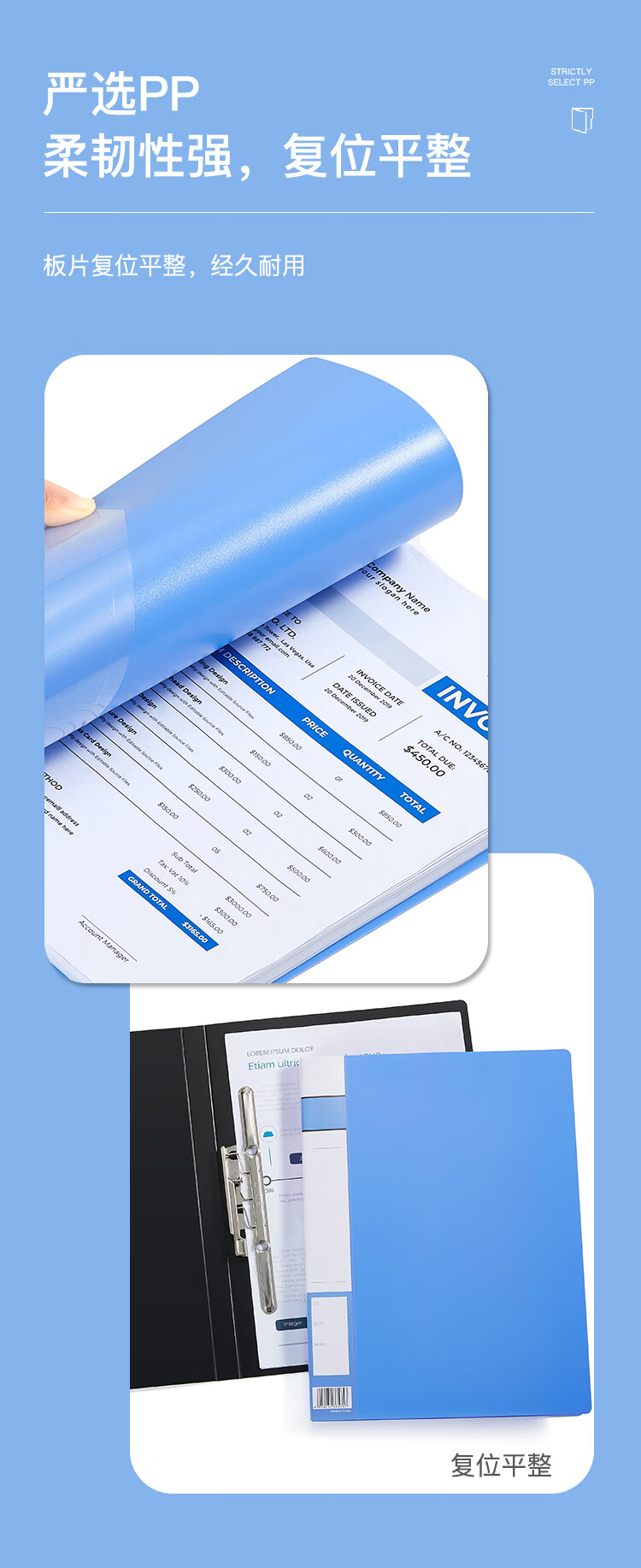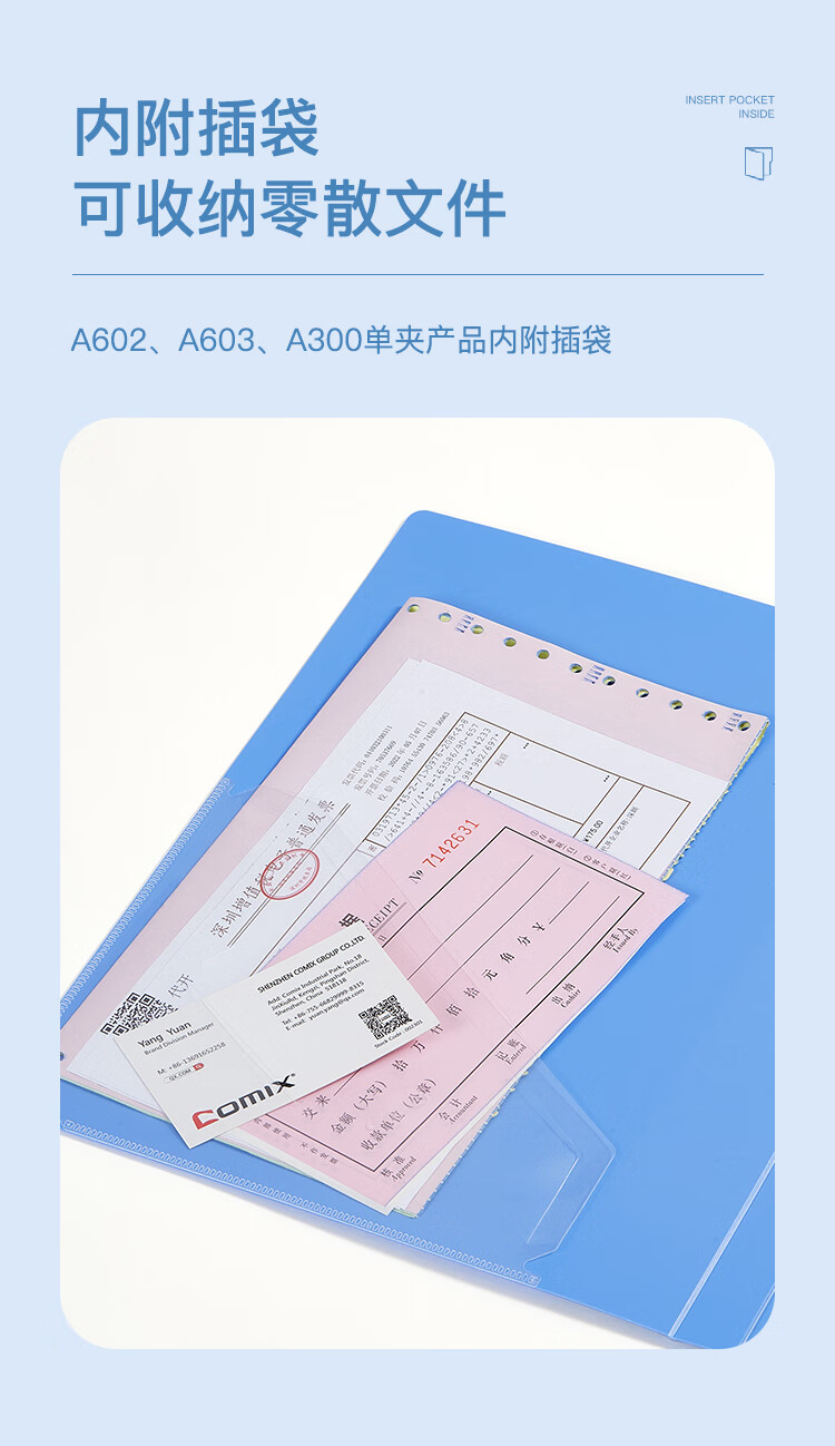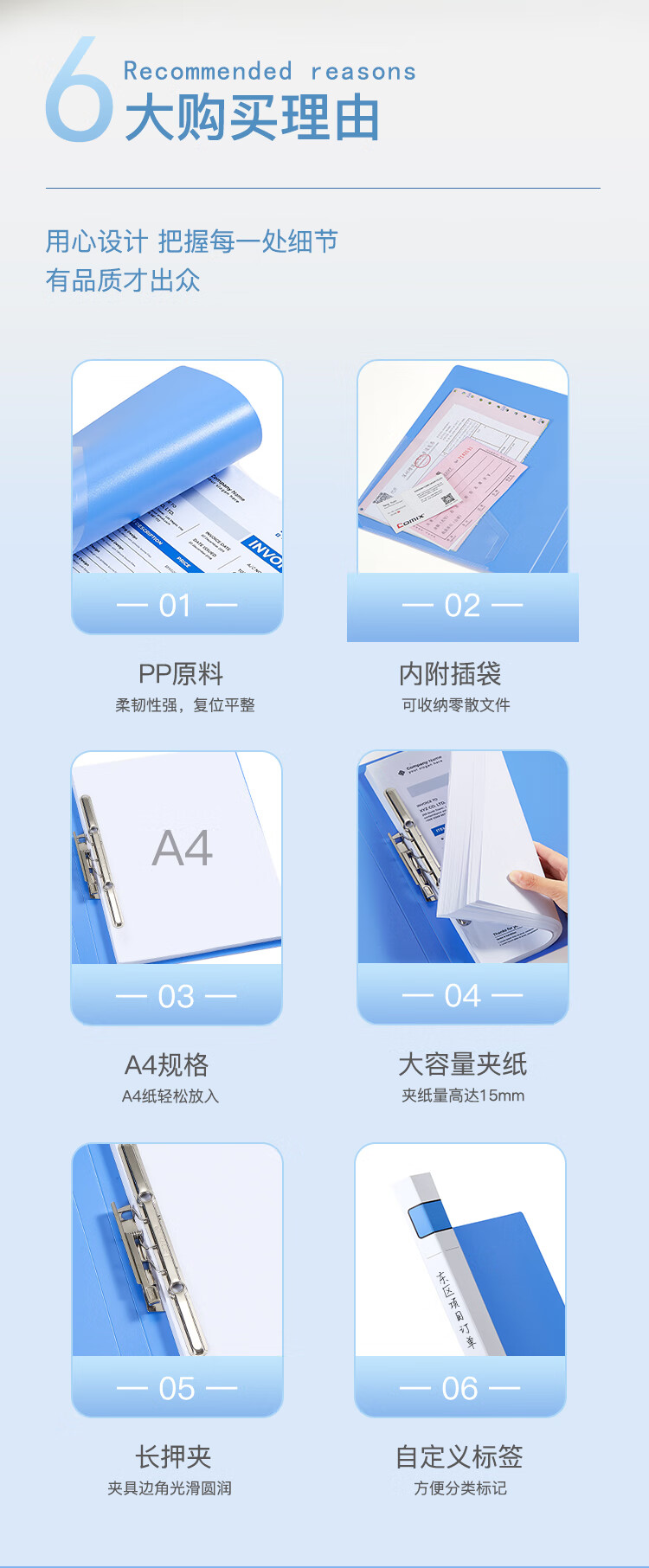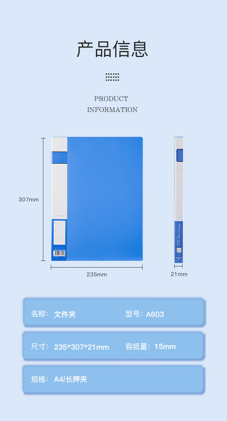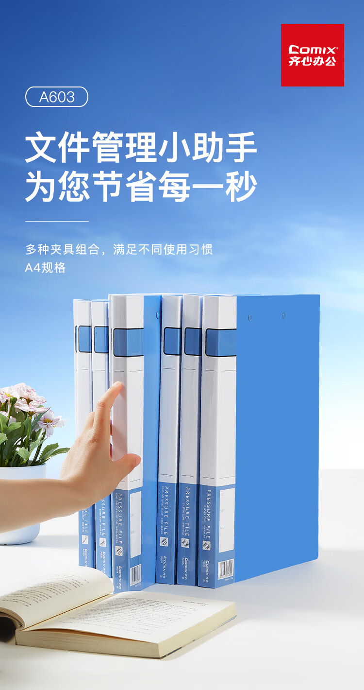 齊心A603辦公必備長押夾 藍*20