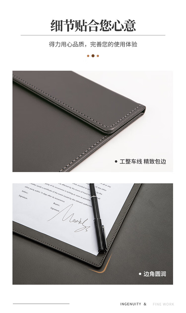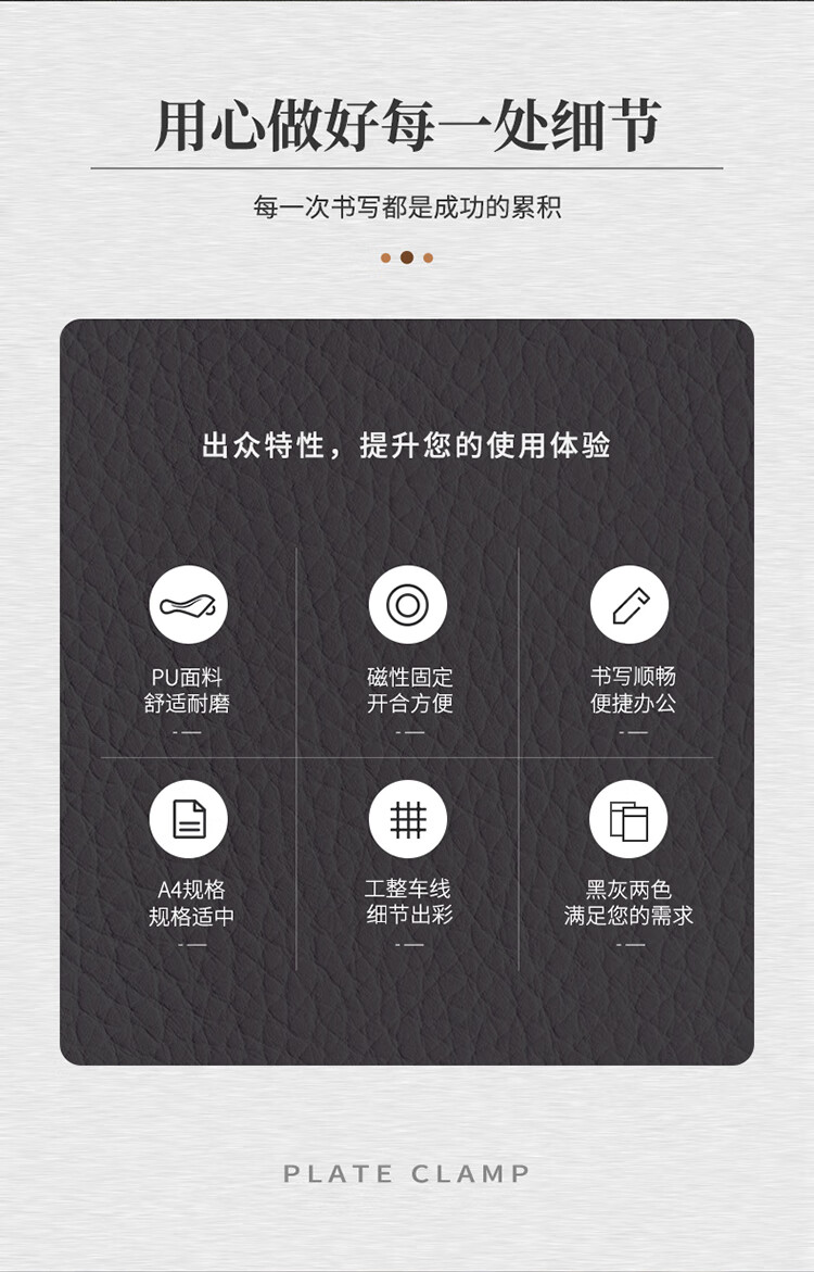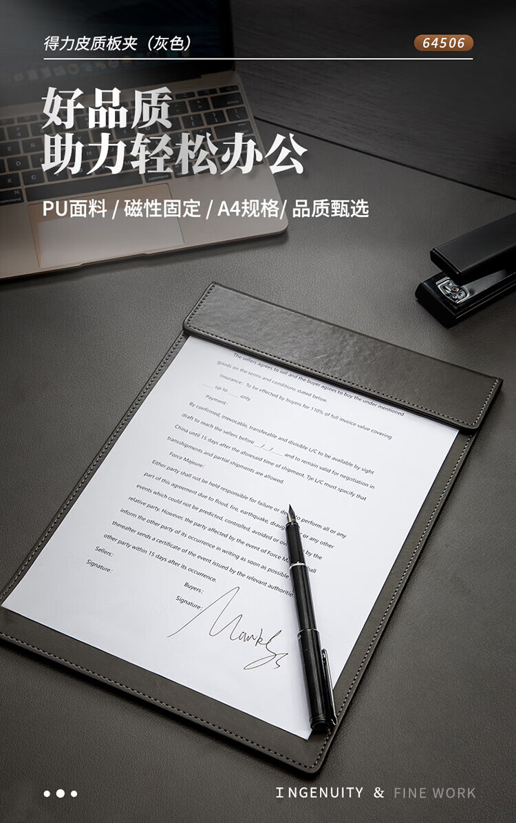 得力64506_A4皮質磁性板夾(灰)