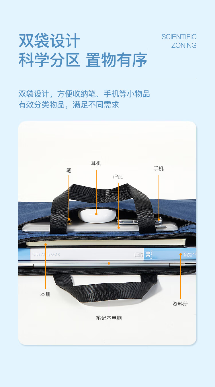 齊心A8158雙層手提事務袋藍*25