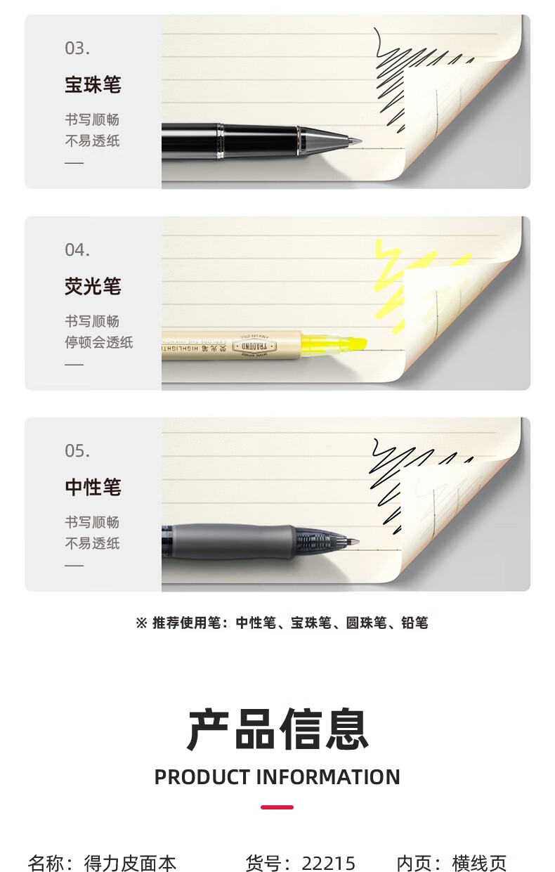 得力22215商務插筆皮面本(黑色)25K 96頁
