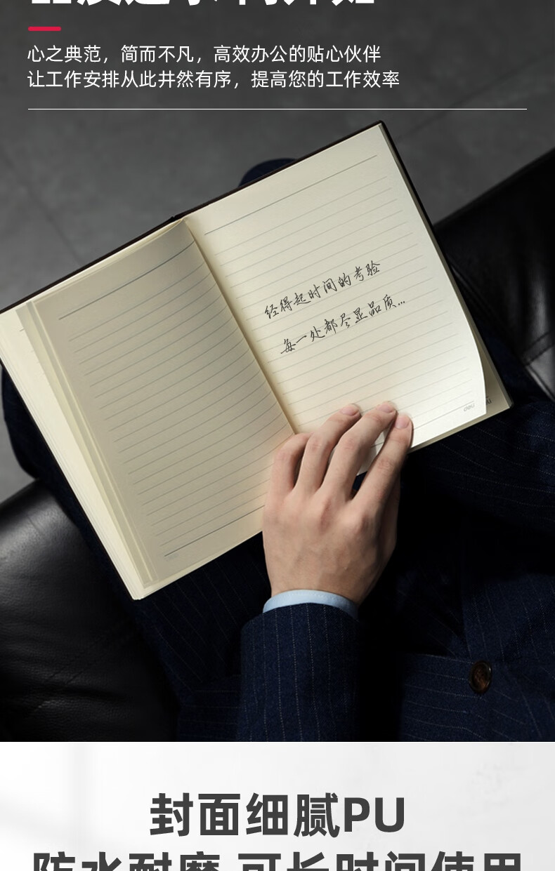 得力22215商務插筆皮面本(黑色)