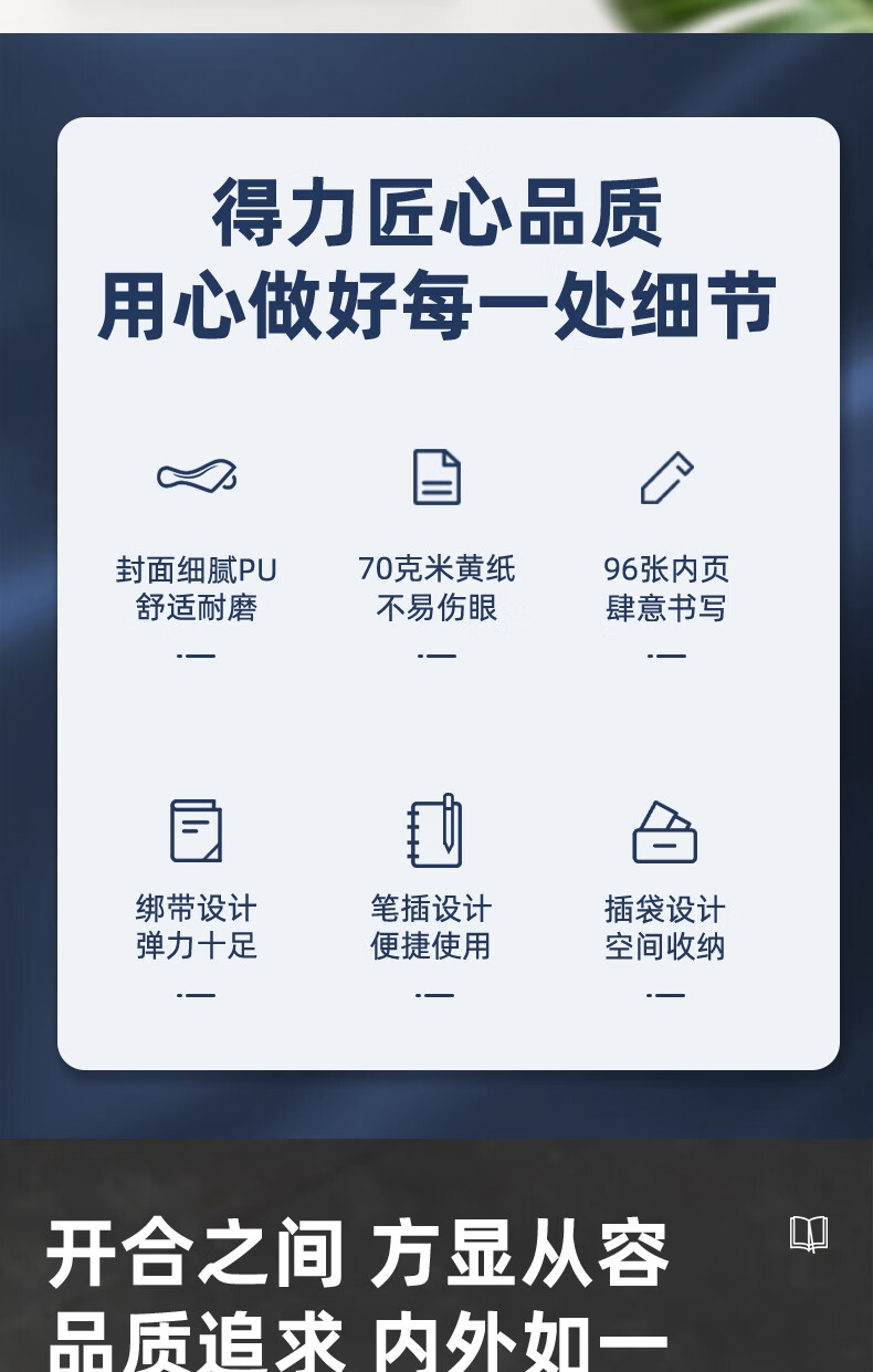 得力22215商務插筆皮面本(深藍)25K 96頁
