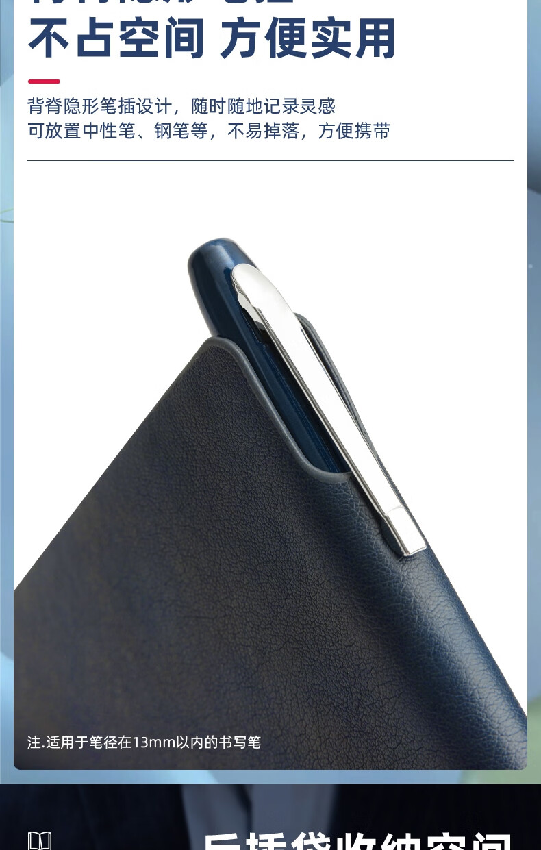 得力22215商務插筆皮面本(深藍)