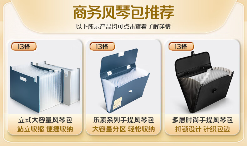 得力63951立式風琴包13格A4文件夾橫式(深藍)
