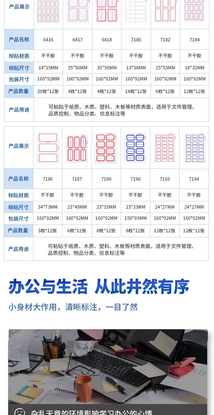 得力9062指示標簽12*44mm(混)