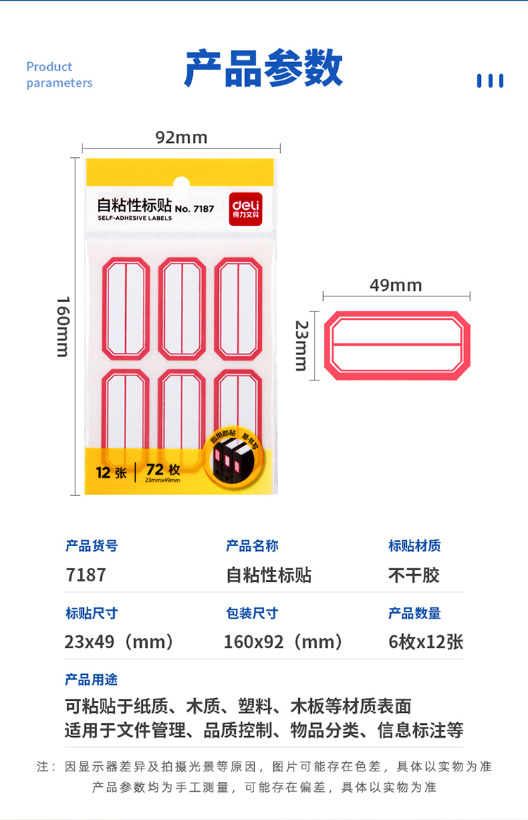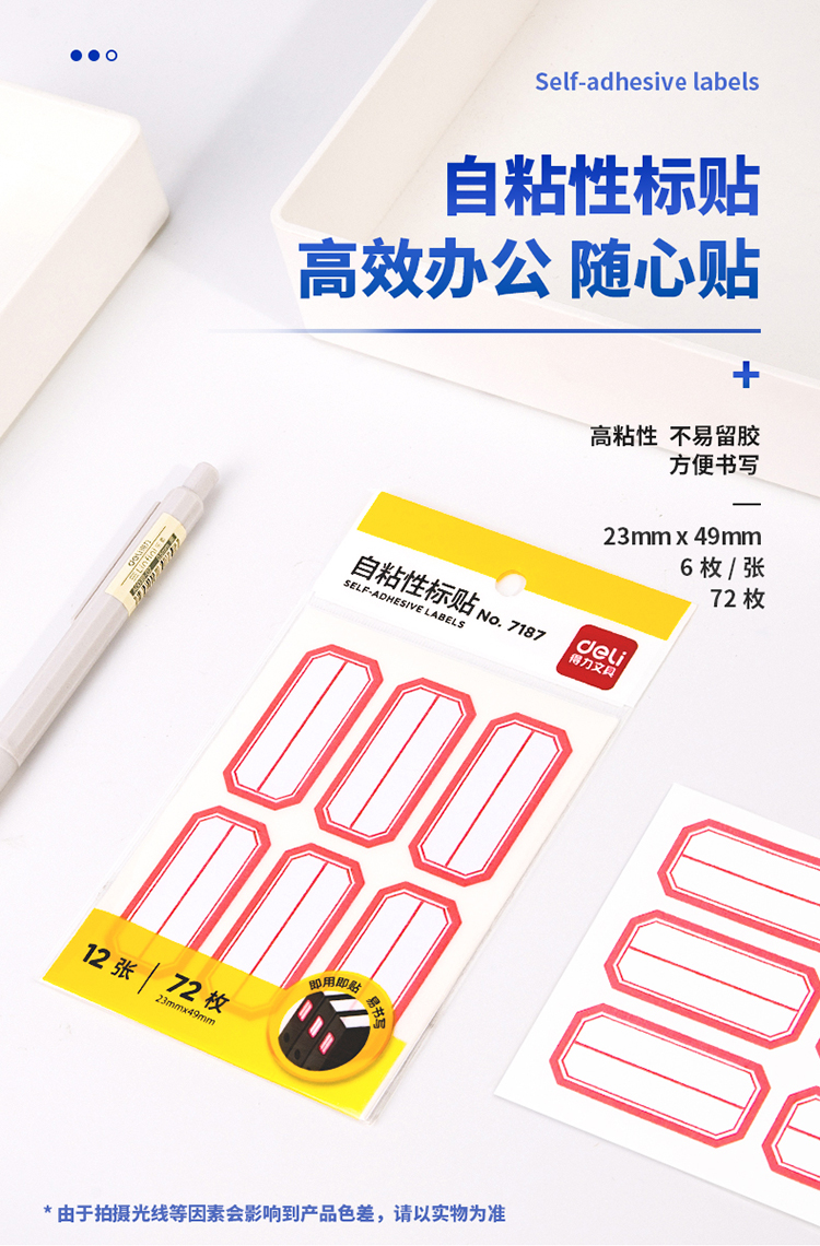得力7187自粘性標貼(白)23*49mm(本)*25