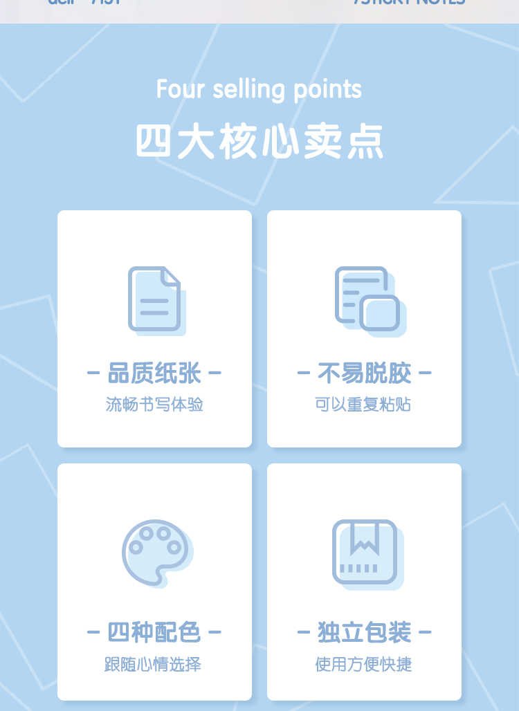 得力7151彩色百事貼(混)76*76mm*4