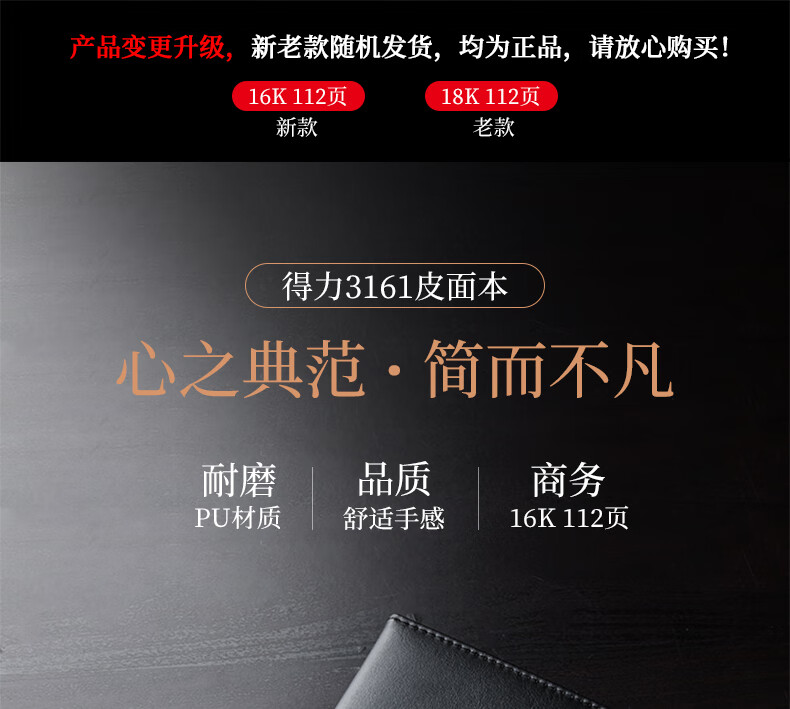 得力3161高級記事本(黑)16k-112張
