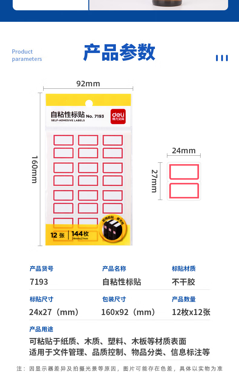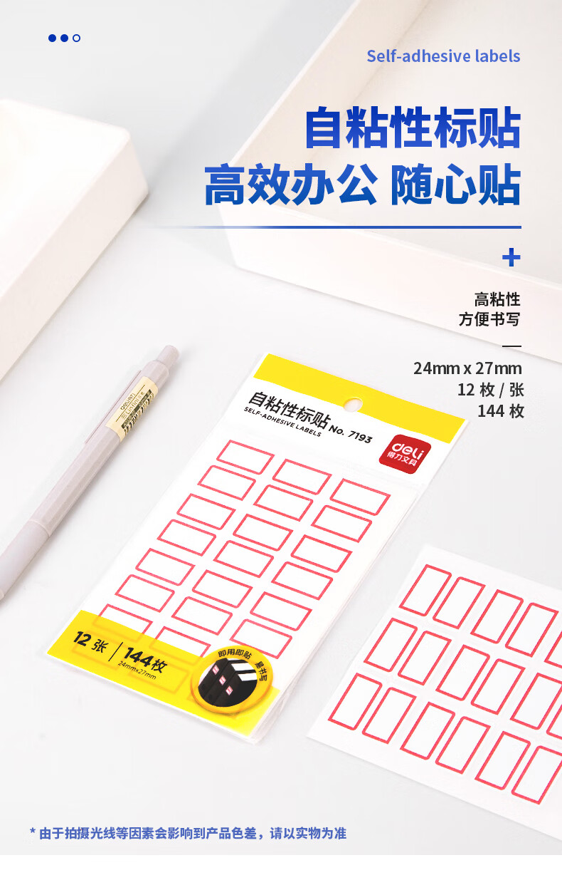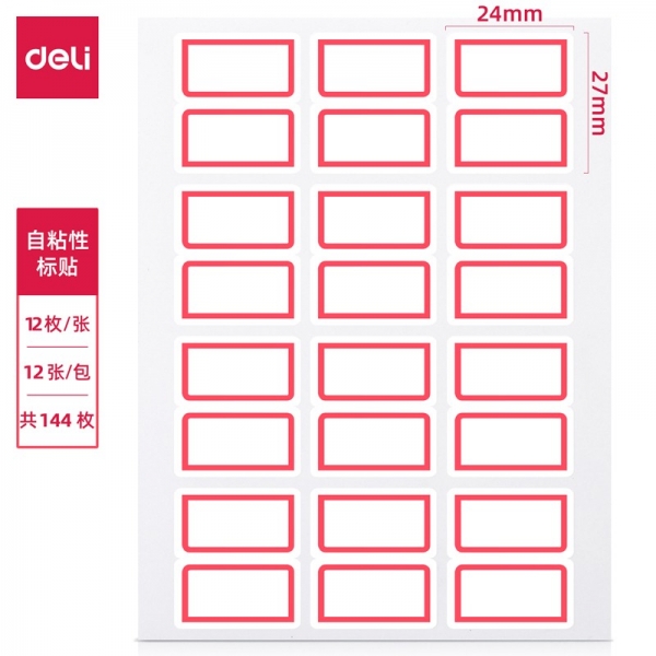 得力7193自粘性標貼(白)24*27mm*12枚*12張