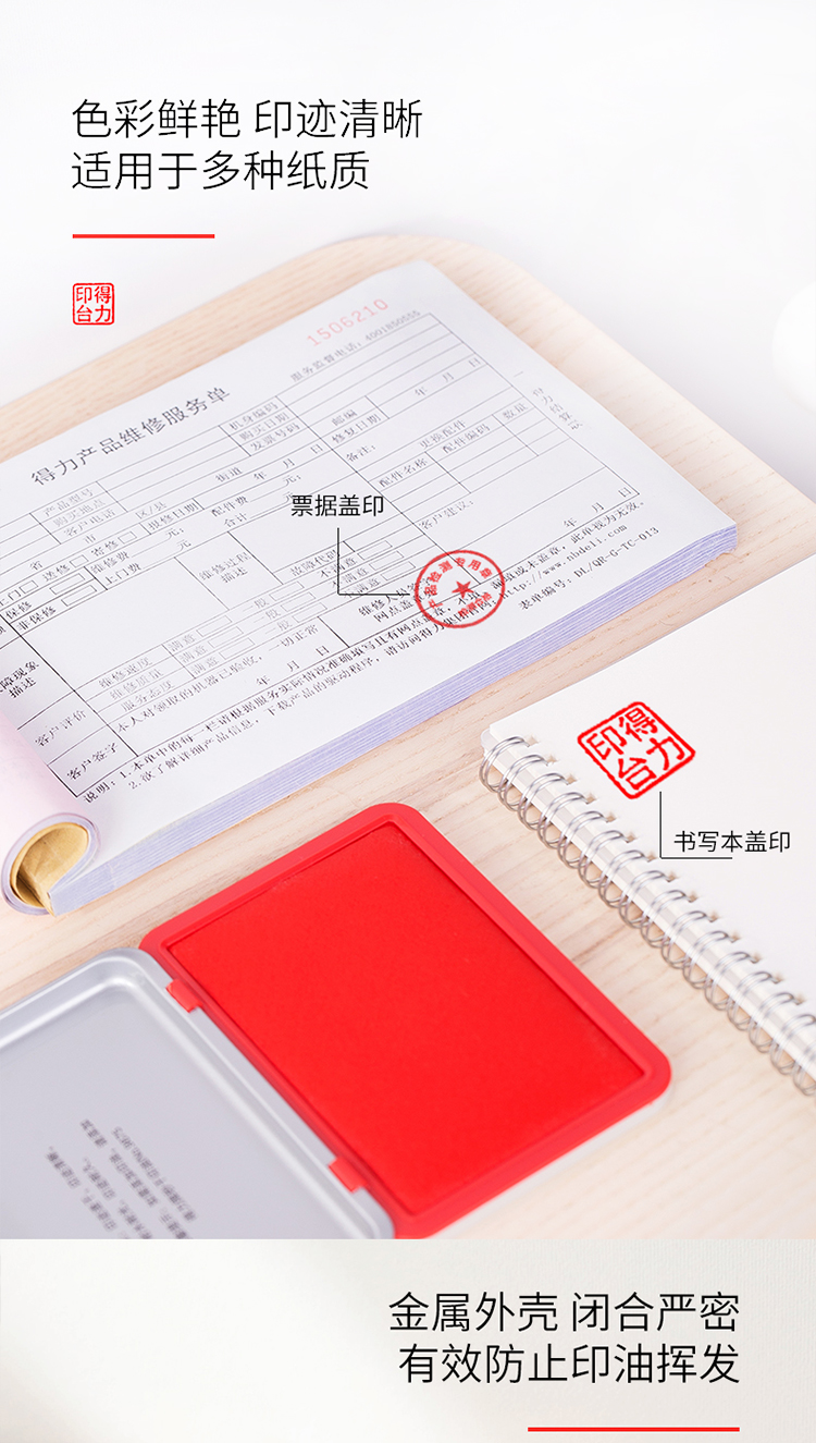 得力9893方形鐵蓋秒干印臺143x87mm(紅)