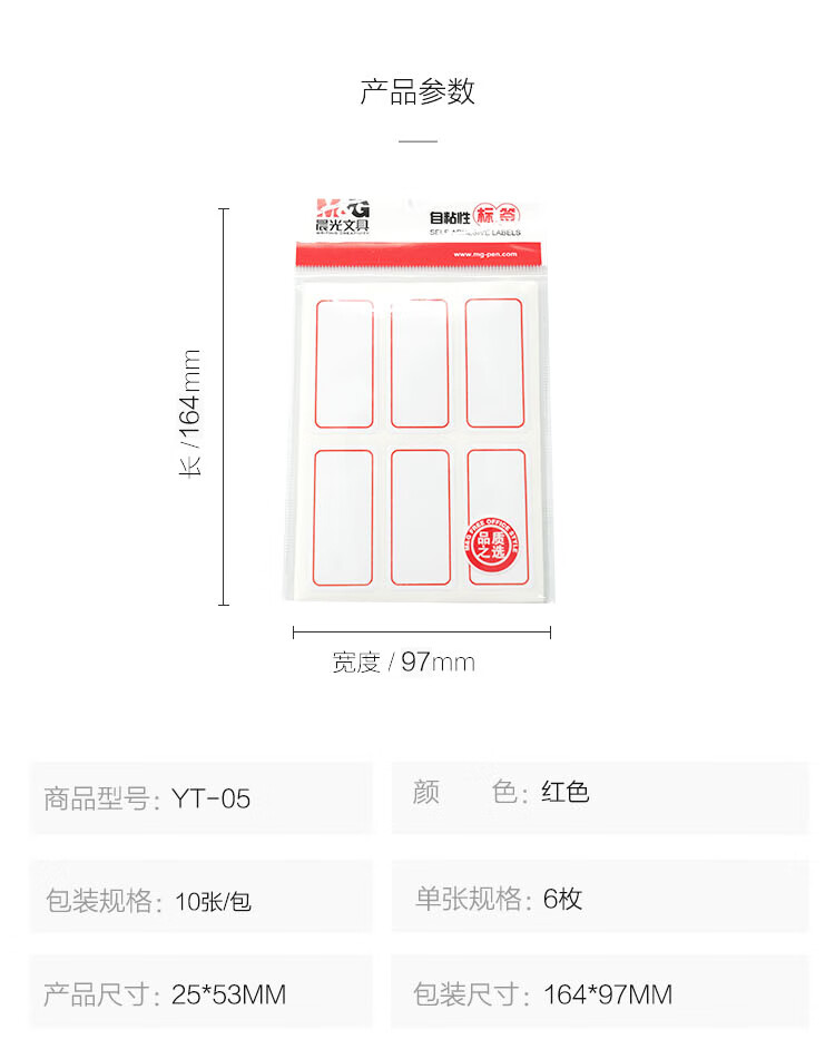 C晨光2枚X10自粘性標簽(紅)YT-01