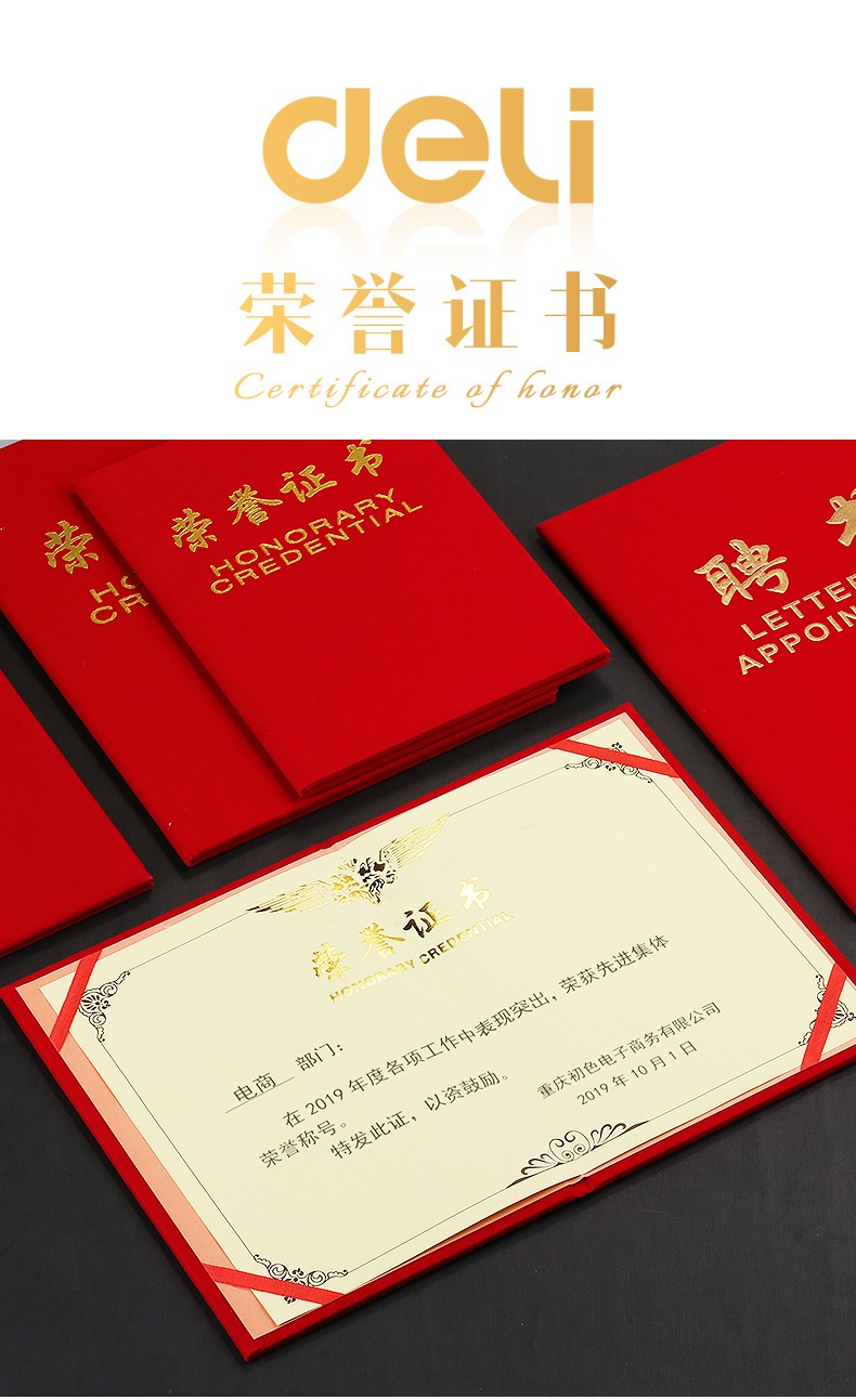 得力7578榮譽證書(榮光)(紅)-12K