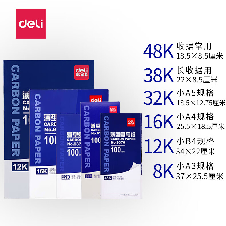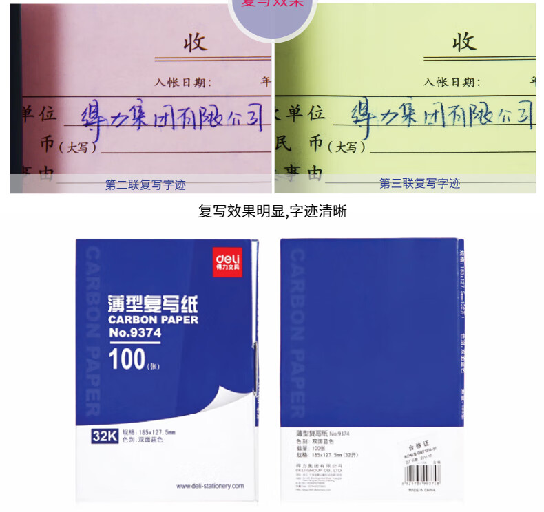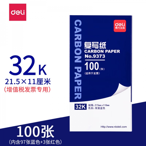 得力9373薄型復寫紙(增值稅發票專用)(藍)-32K(100張/盒)
