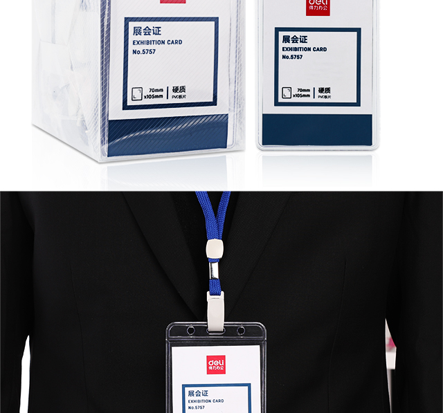 得力5757證件卡帶繩(藍)(50只/盒)