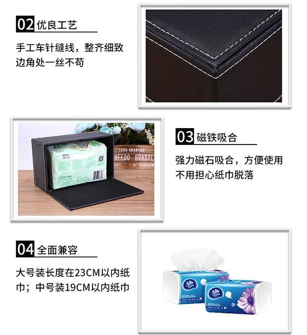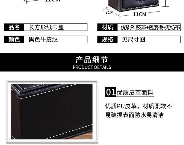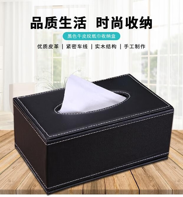 黑色皮面中號抽紙盒19*12*8cm