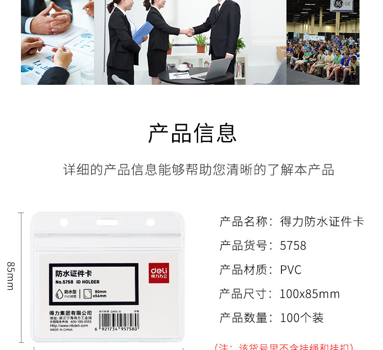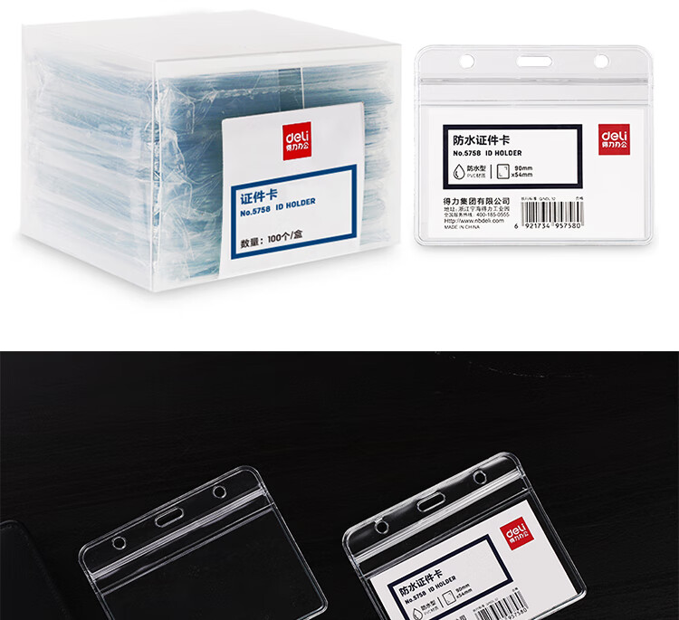 得力5758證件卡(透明)(10只/包)