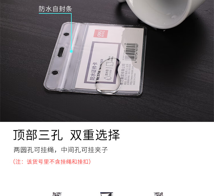 得力PZ02軟質PVC證件卡-豎款(透明)(48個/盒)