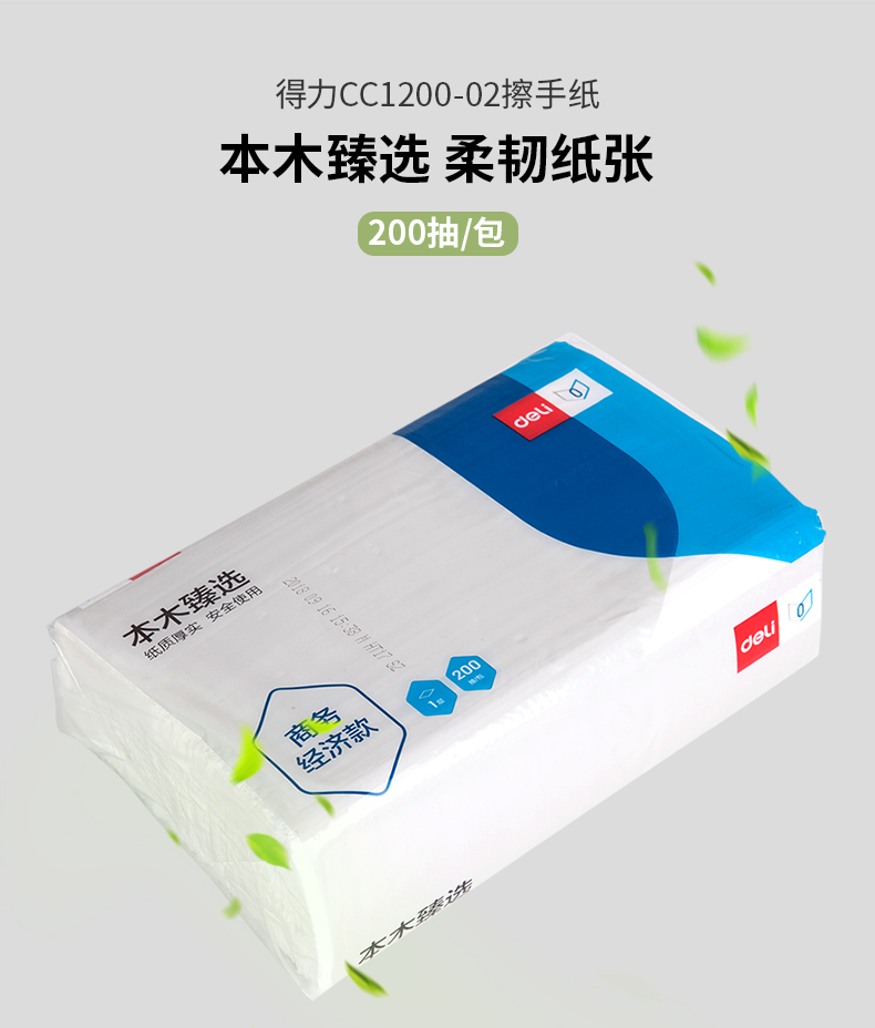 得力CC1200-02本木臻選擦手紙單層200抽*20