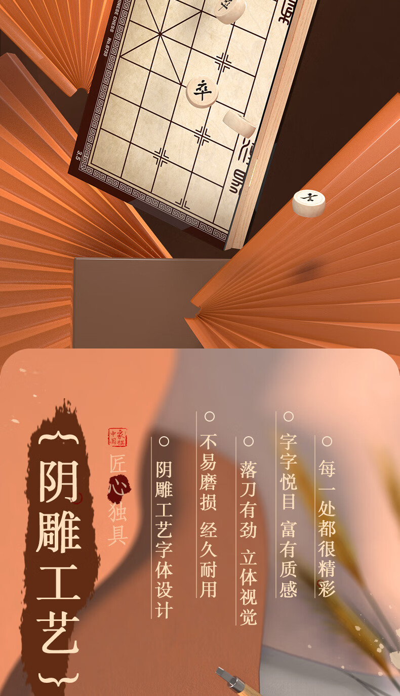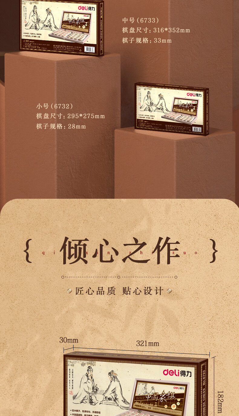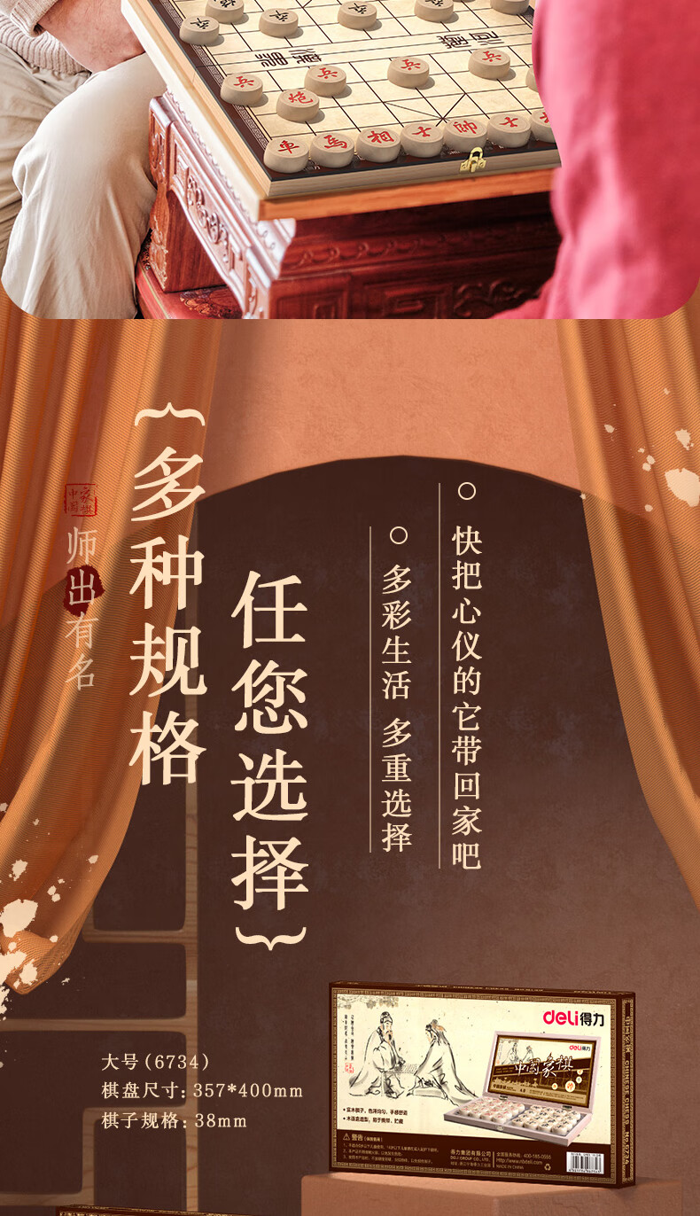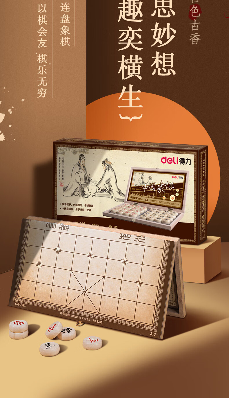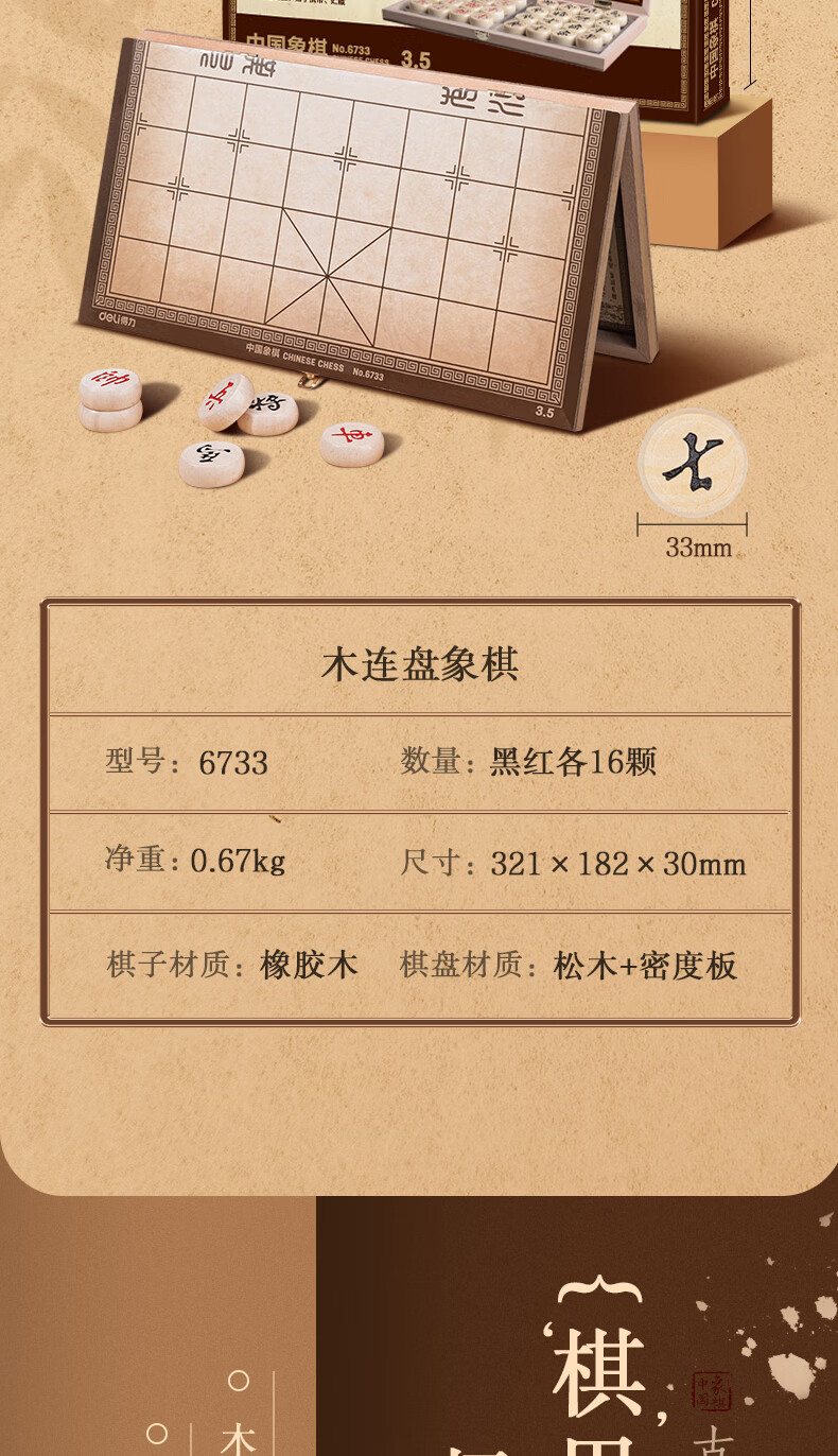 得力6733中號中國象棋(原木色)