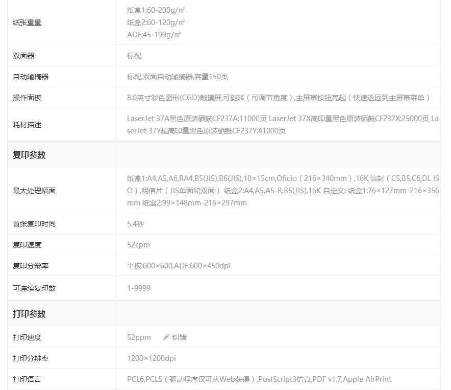 惠普M437DN黑白激光一體機:標準網絡及雙面