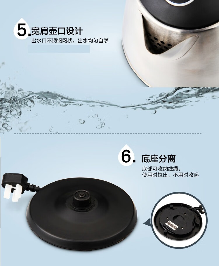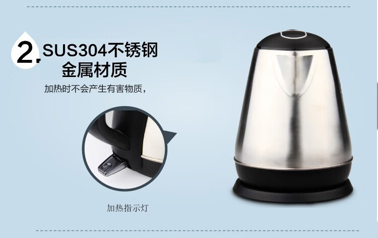 得力0763電熱水壺1.5L(灰白)單層不銹鋼