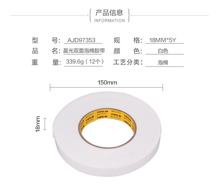 晨光雙面泡棉膠帶12mm*5y(單卷)AJD97393