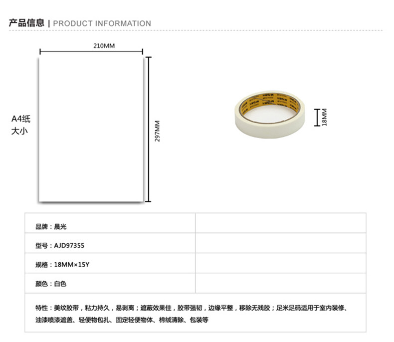 晨光美紋膠帶18mm*15y(單卷)AJD97355*12