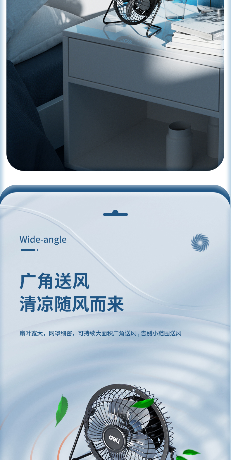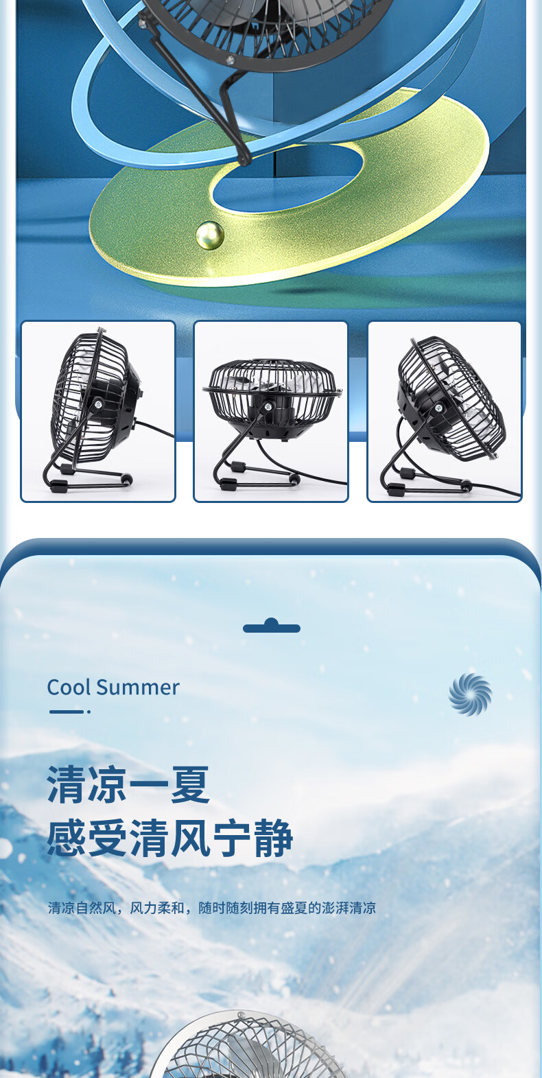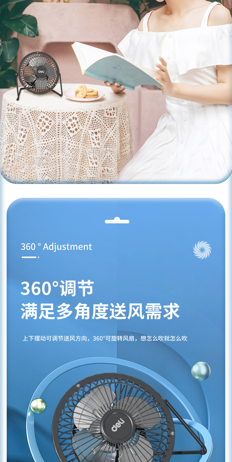 得力3680USB迷你風扇4寸鐵藝USB直供電