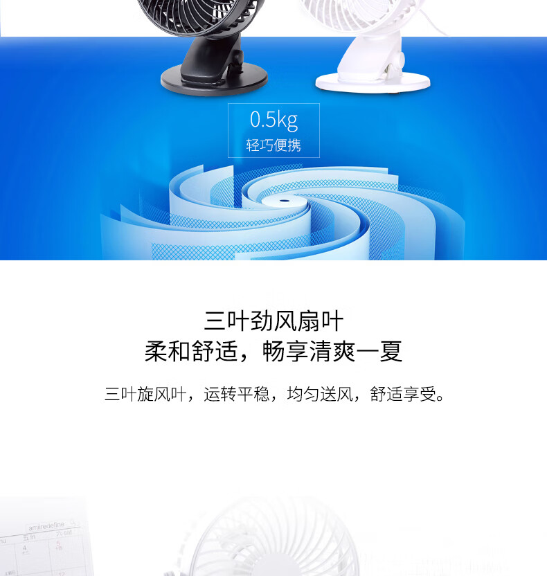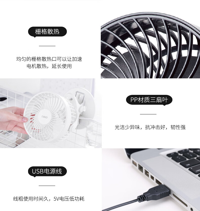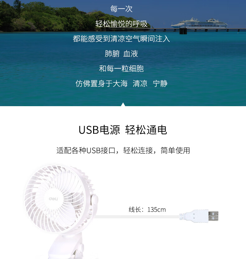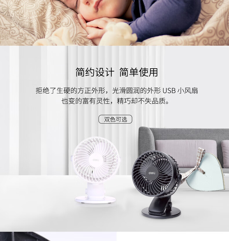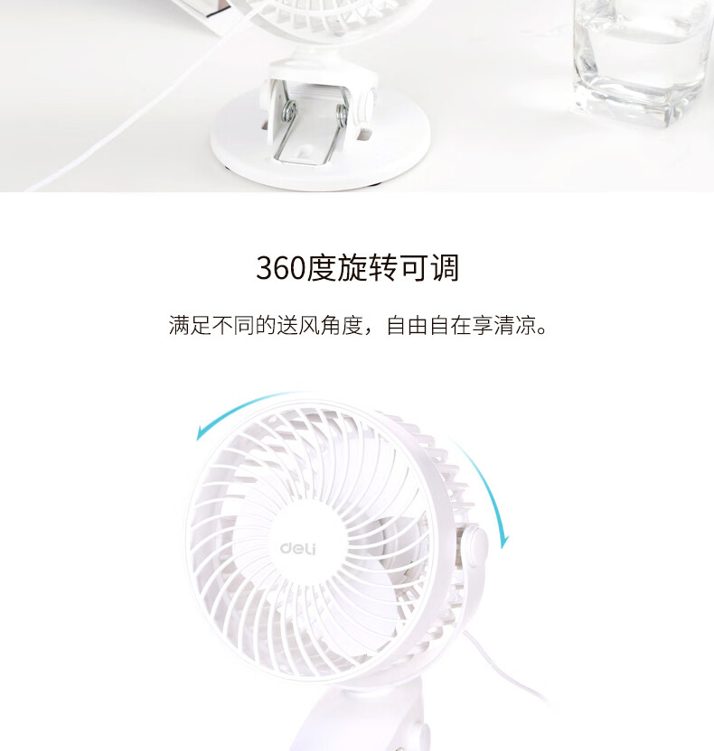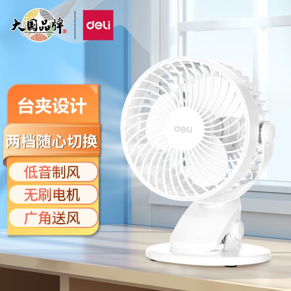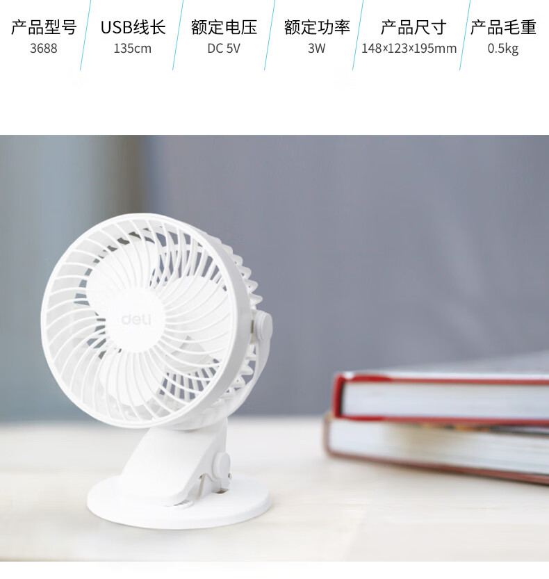 得力3688USB臺(tái)夾風(fēng)扇(白)(1臺(tái)/彩盒)5寸,兩檔,塑料USB直供電