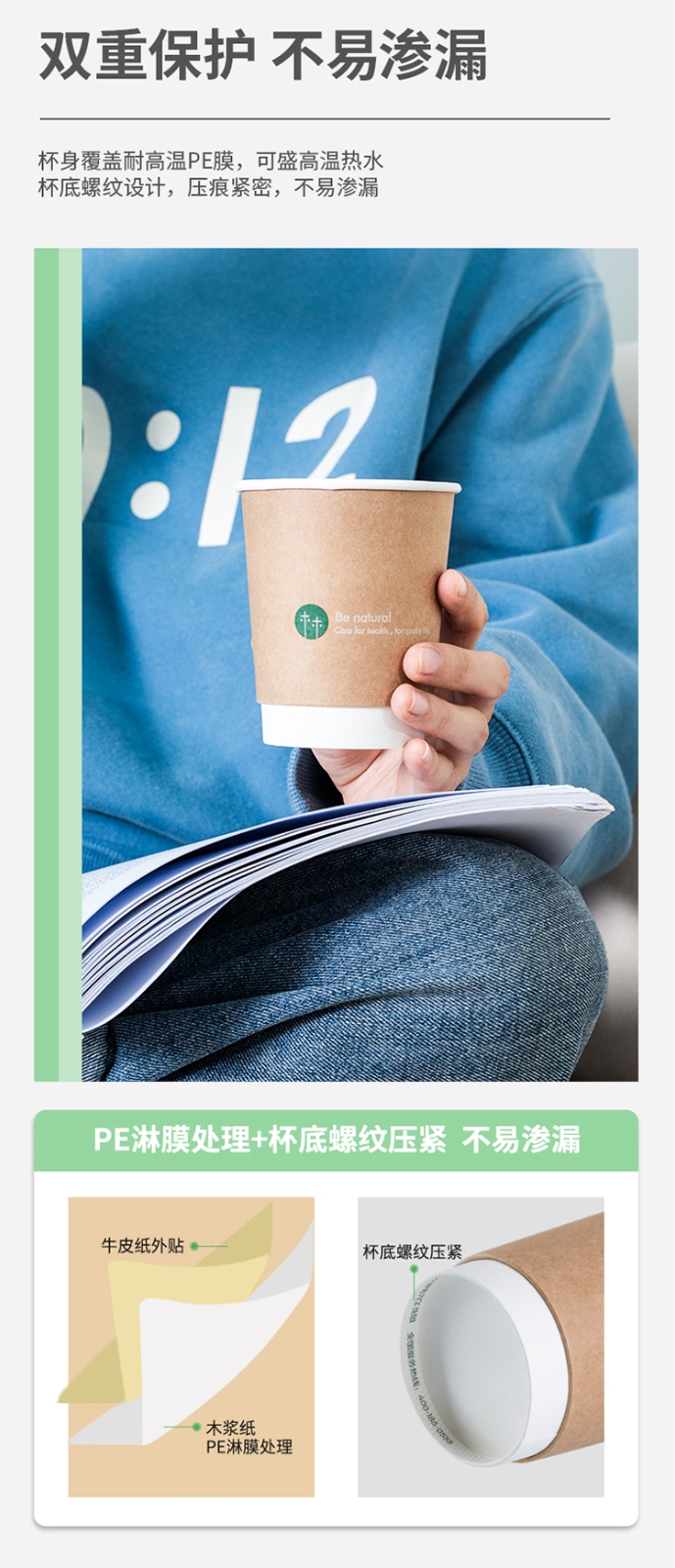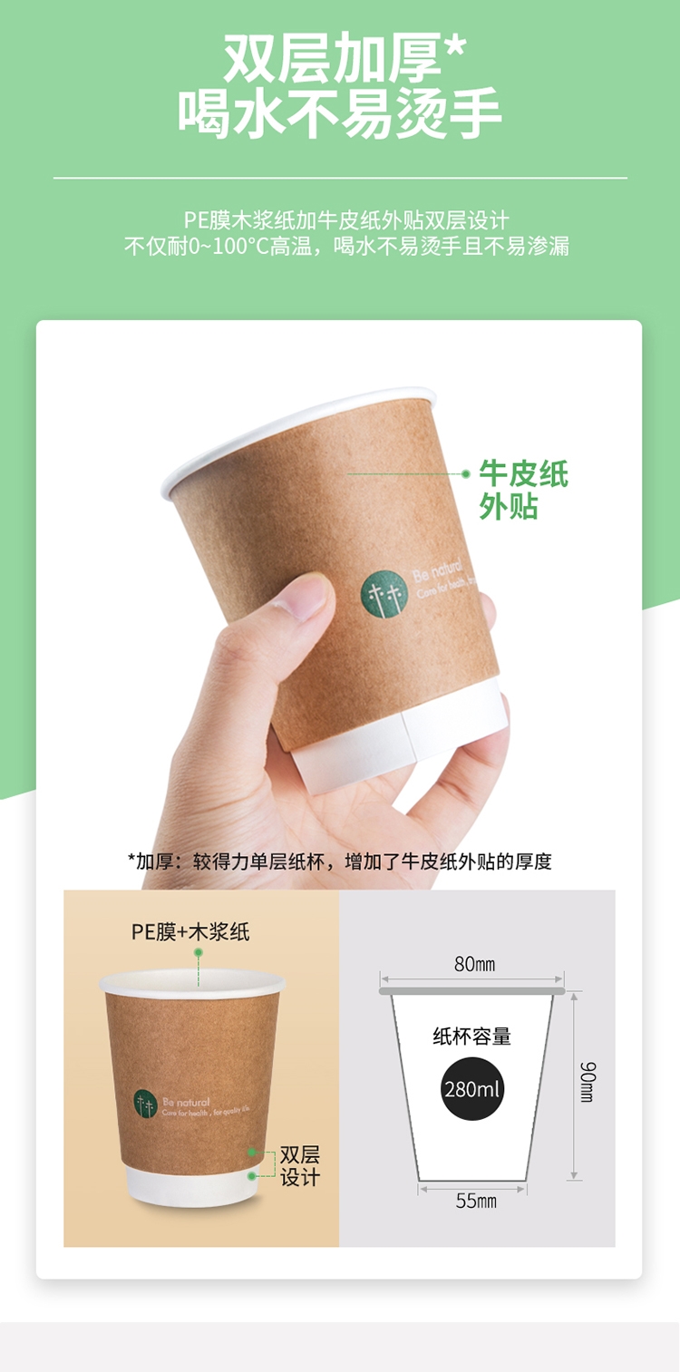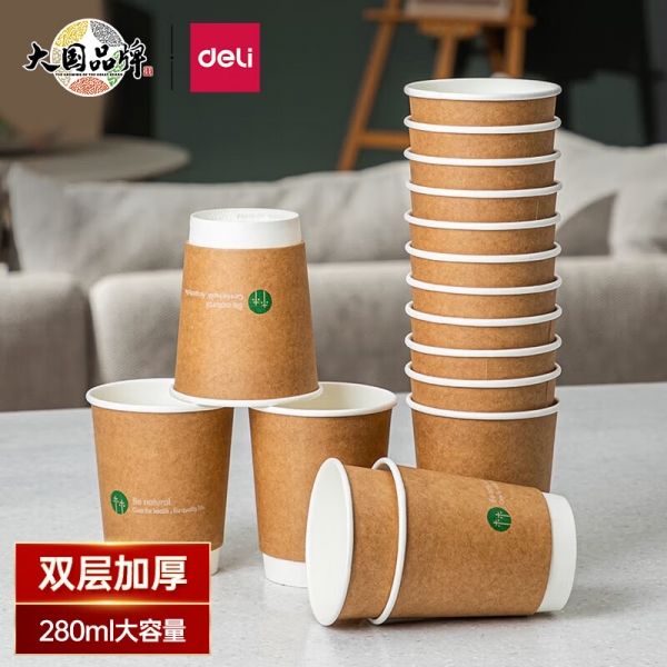 得力19209雙層紙杯(棕)(280ml-50只/袋)