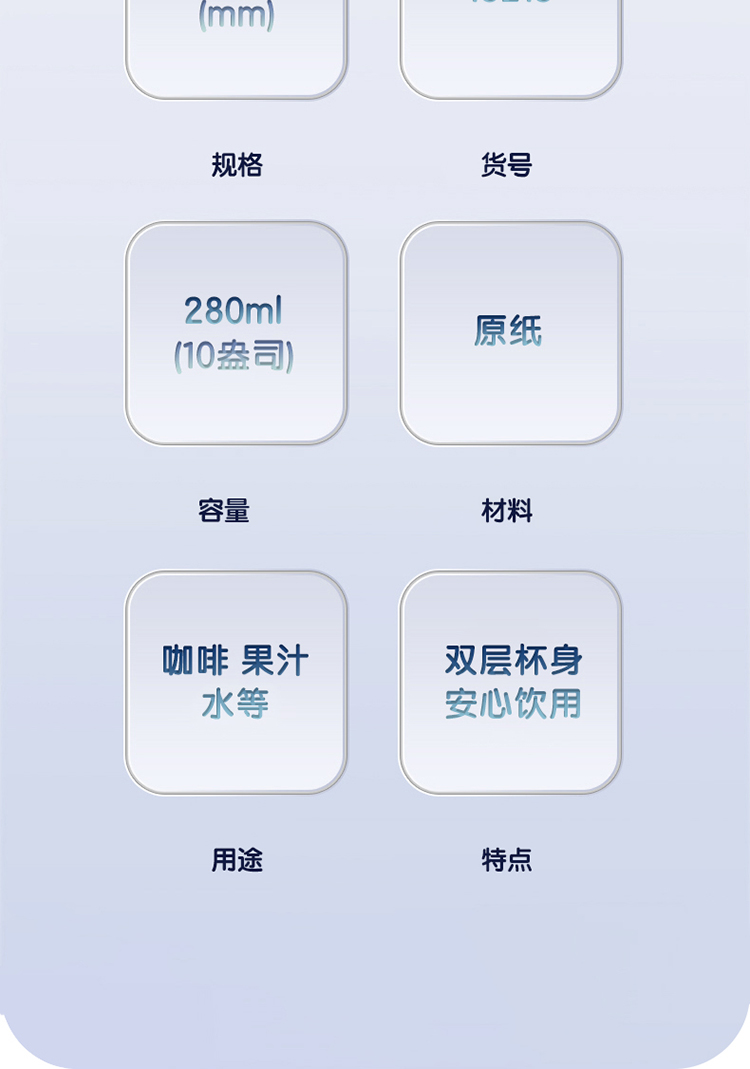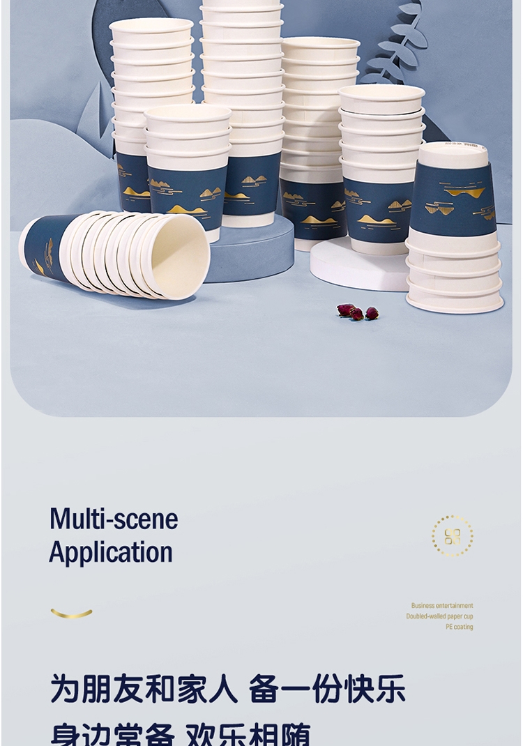 得力19215雙層紙杯(280ml)(藍色)(50只/袋)