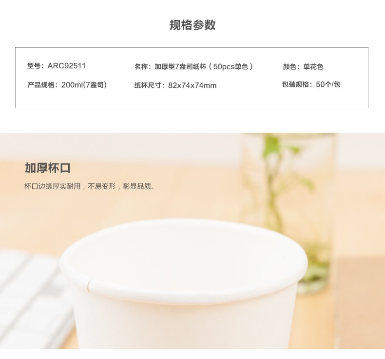 晨光紙杯加厚型7盎司(50pcs單色)ARC92511