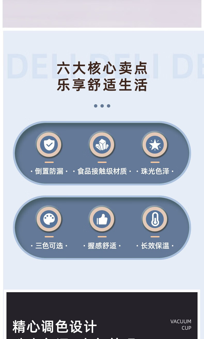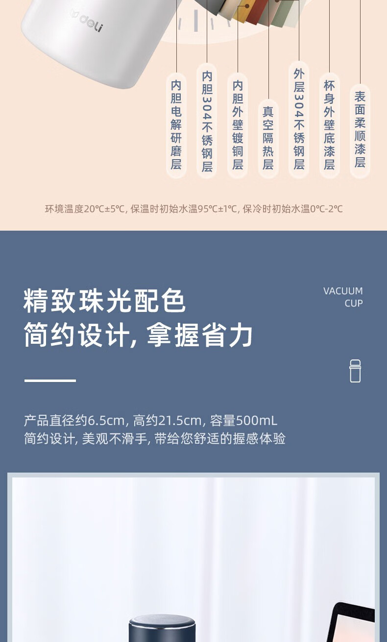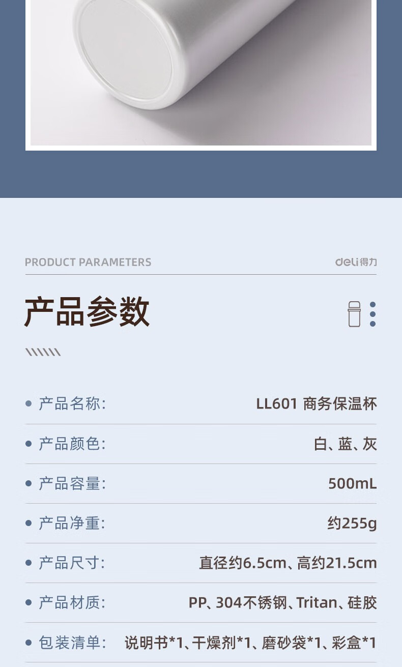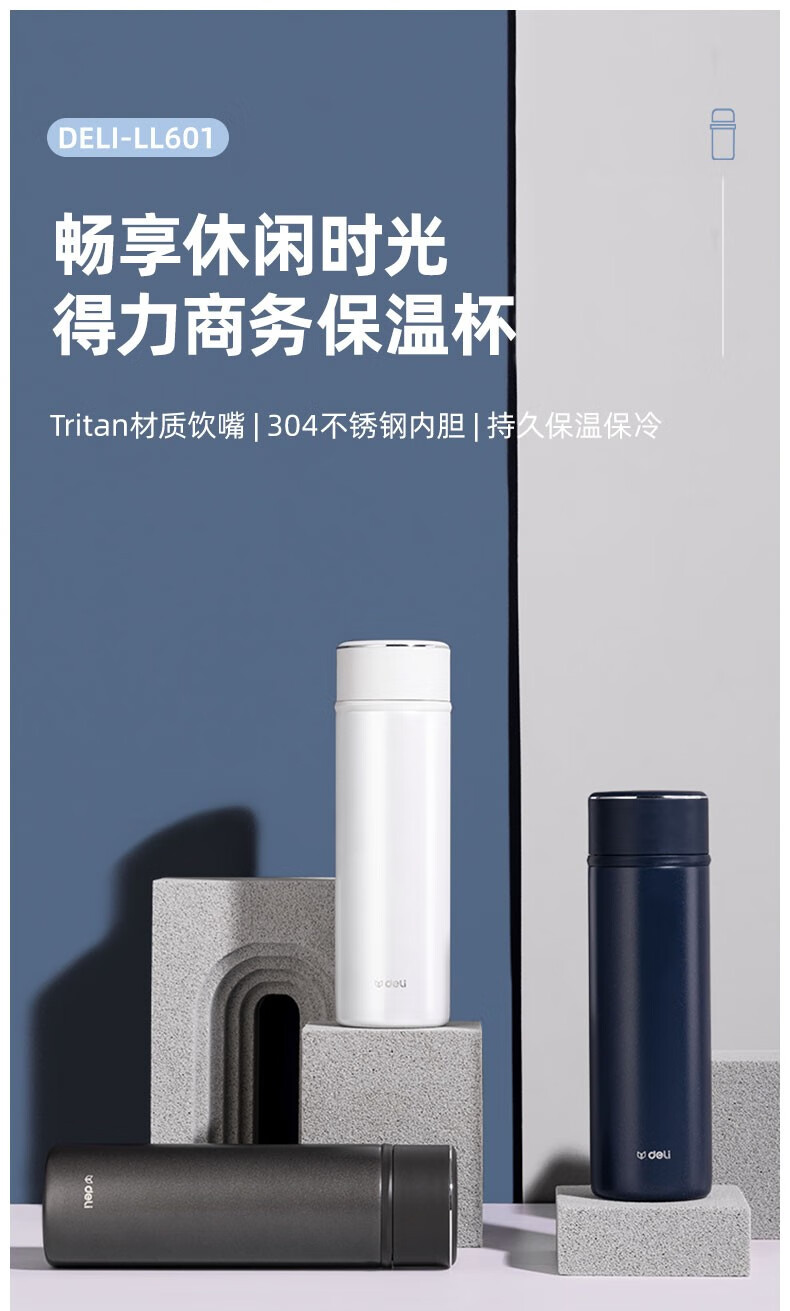 得力LL601-BBE商務保溫杯(500ml)(藍)