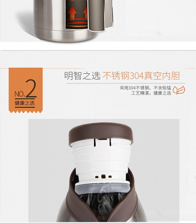 得力17755保溫壺(本色)2L不銹鋼真空保溫