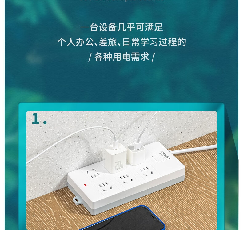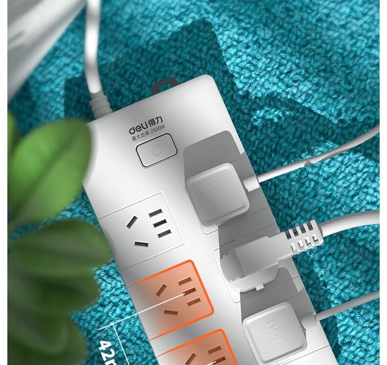 得力18168-05插座_6組_5米_PVC袋裝(白)