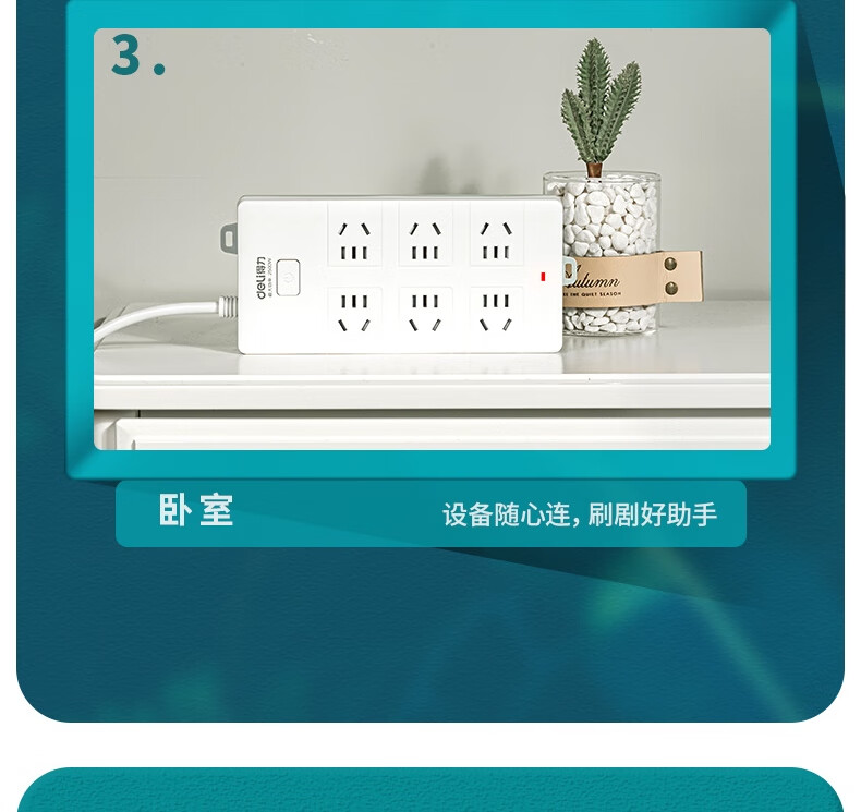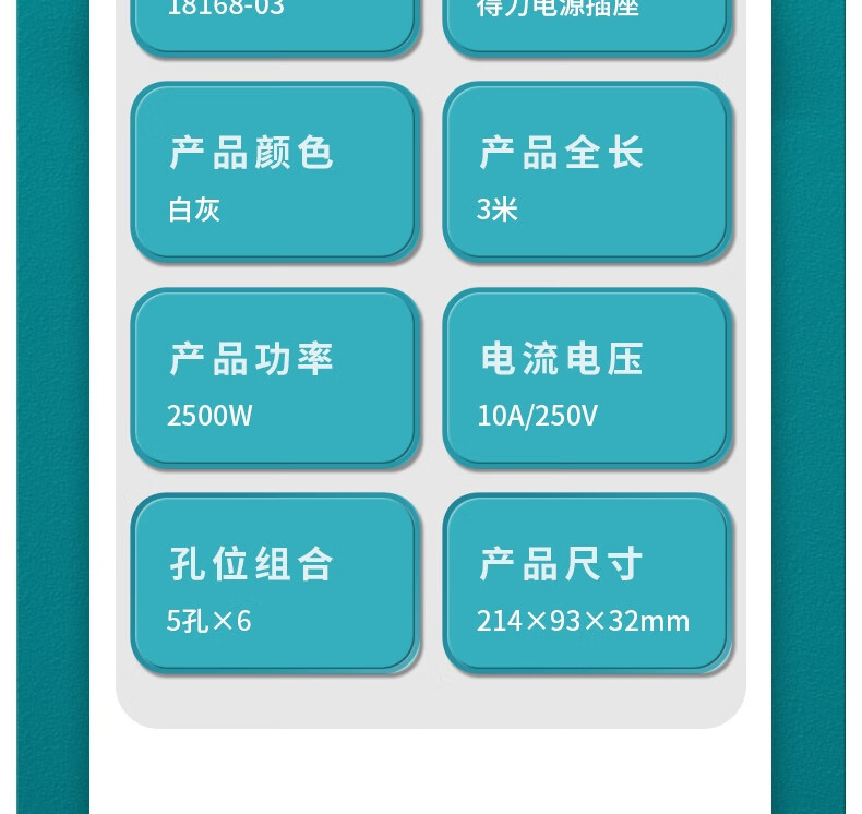 得力18168-03插座_6組_3米_PVC袋裝(白)