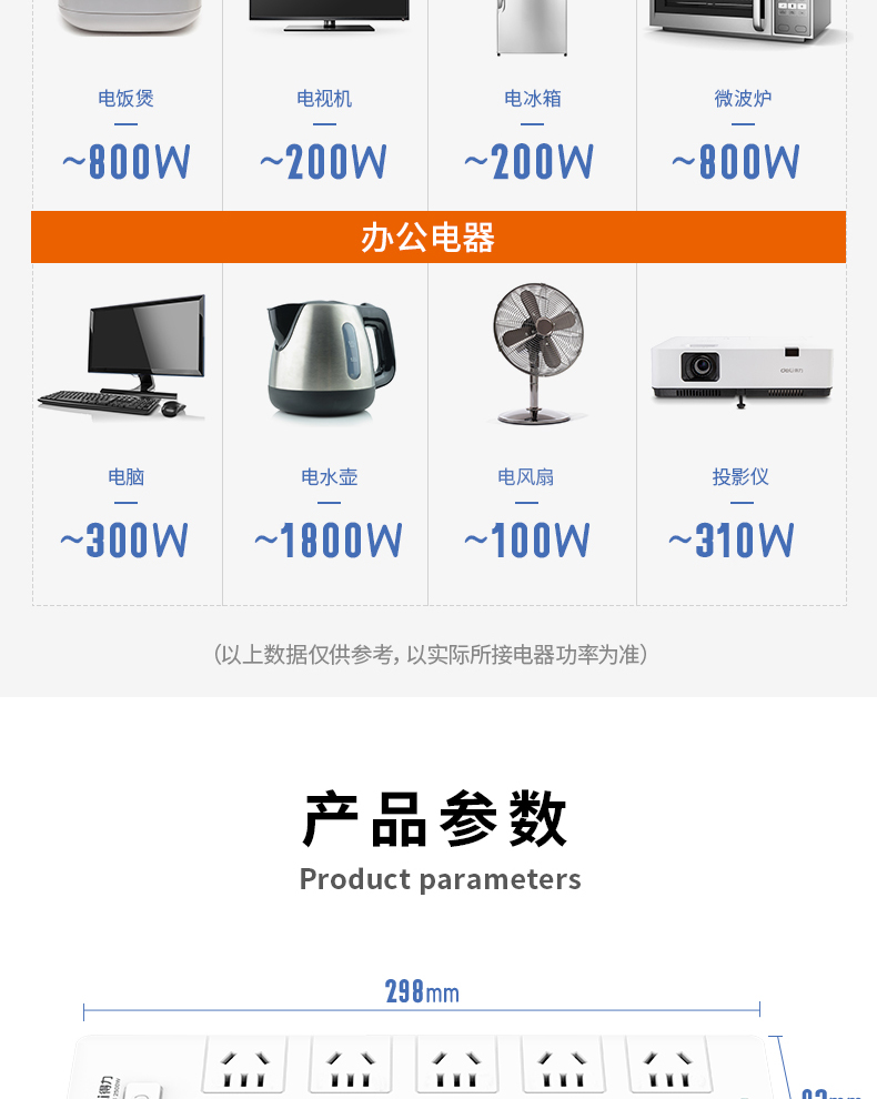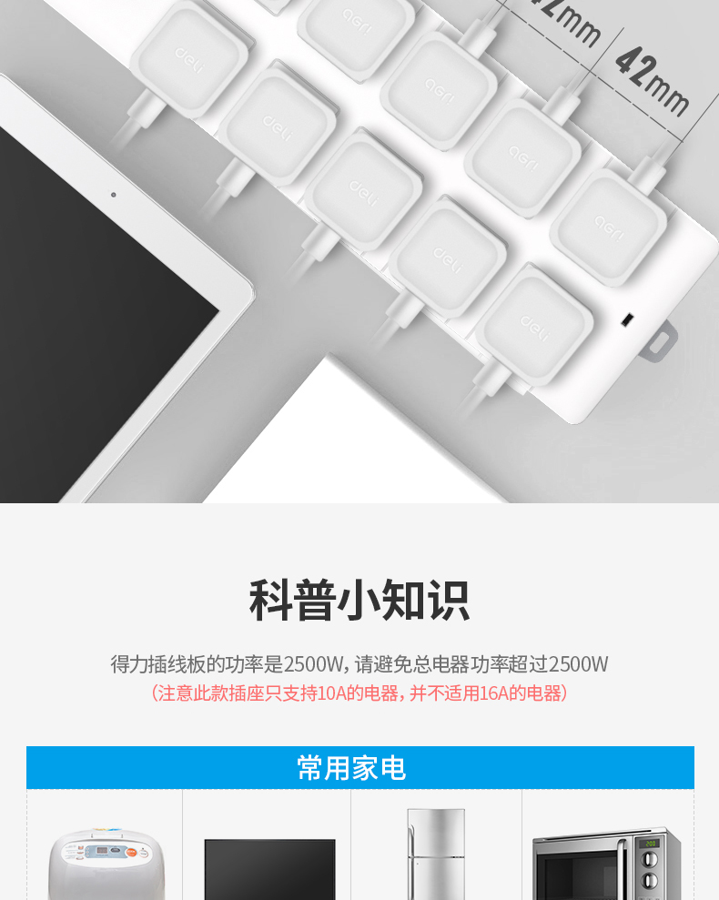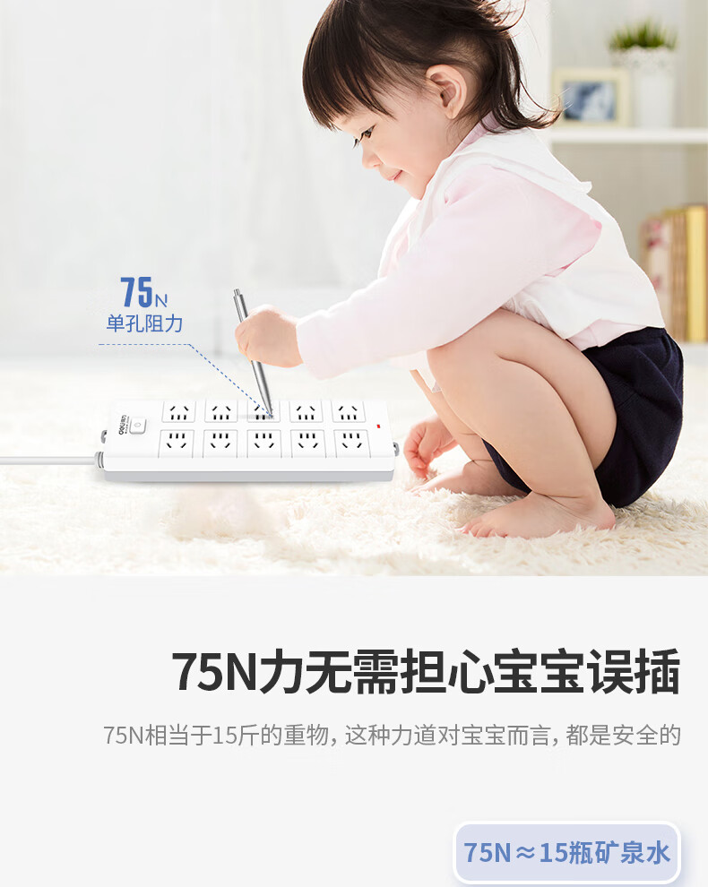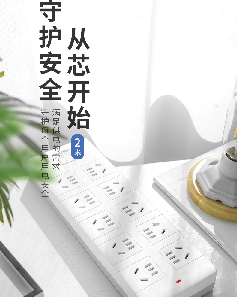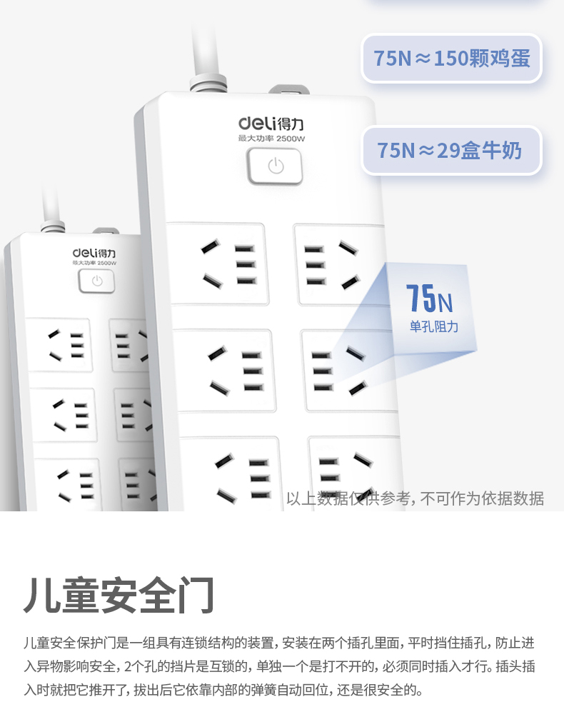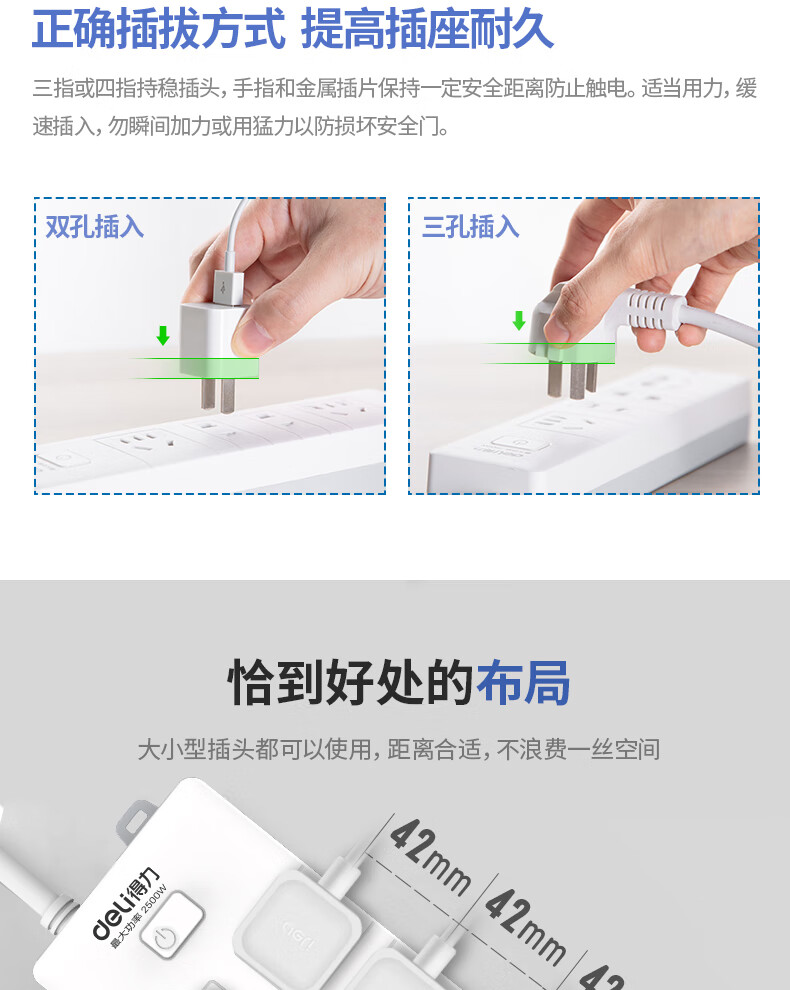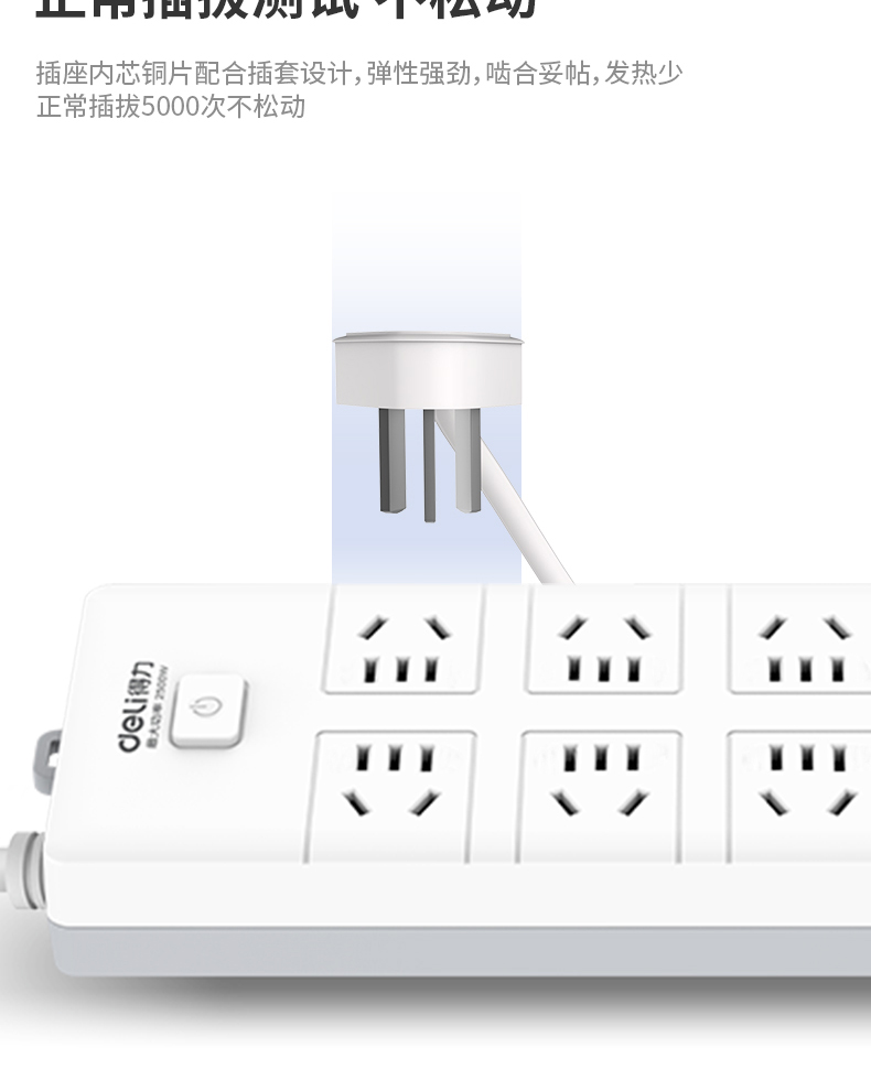 得力18275(02)插座_10組_2米_PVC袋裝(白)