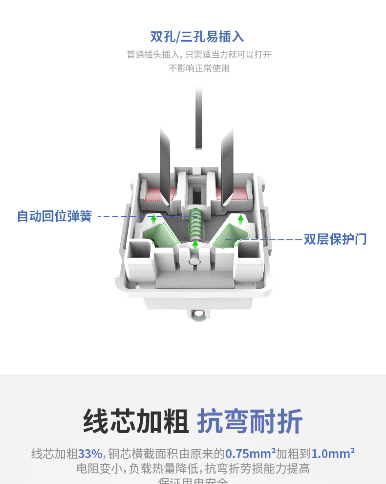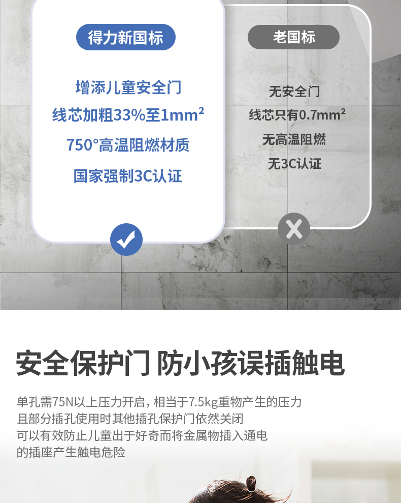 得力18275-03插座10組/3米PVC袋裝(白)
